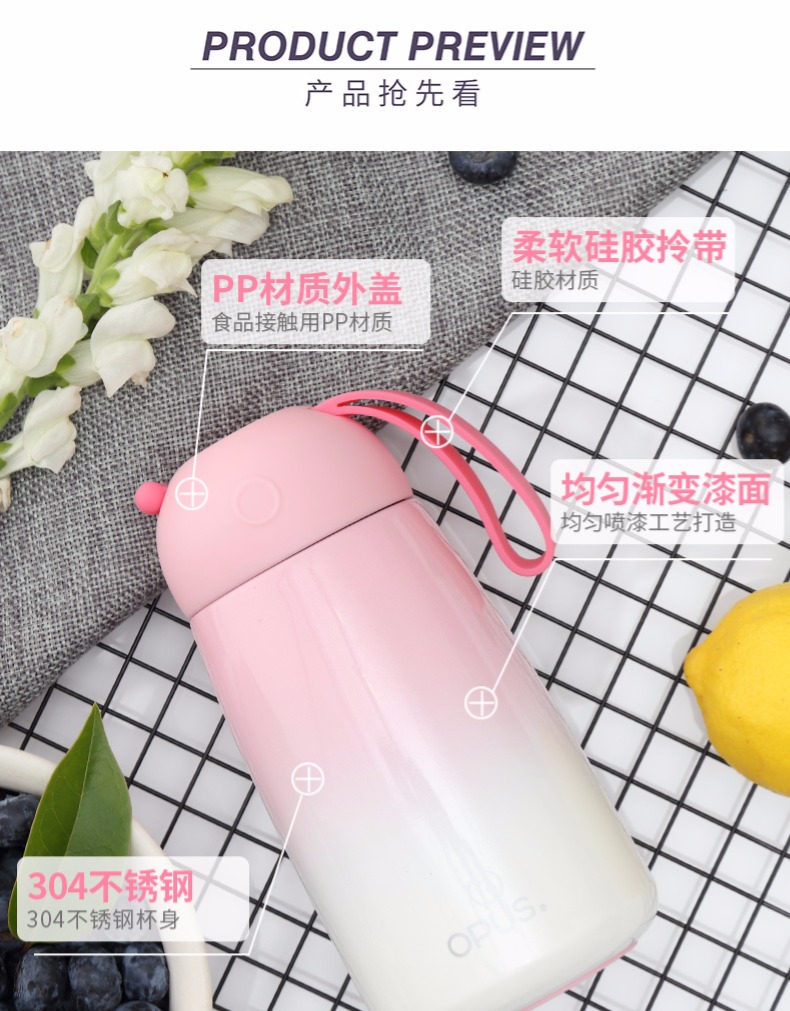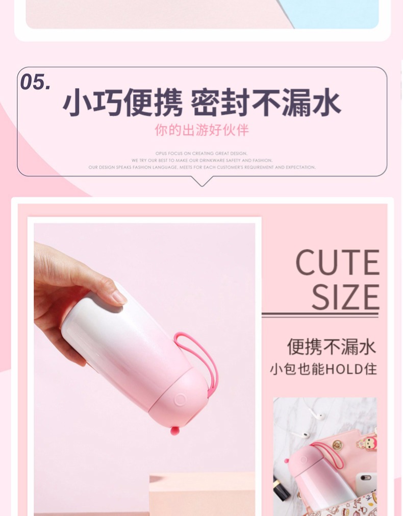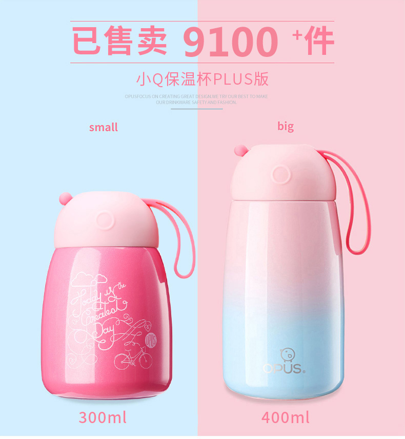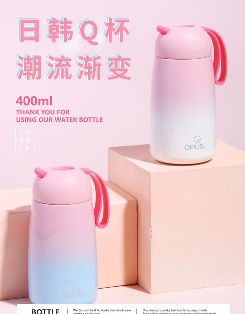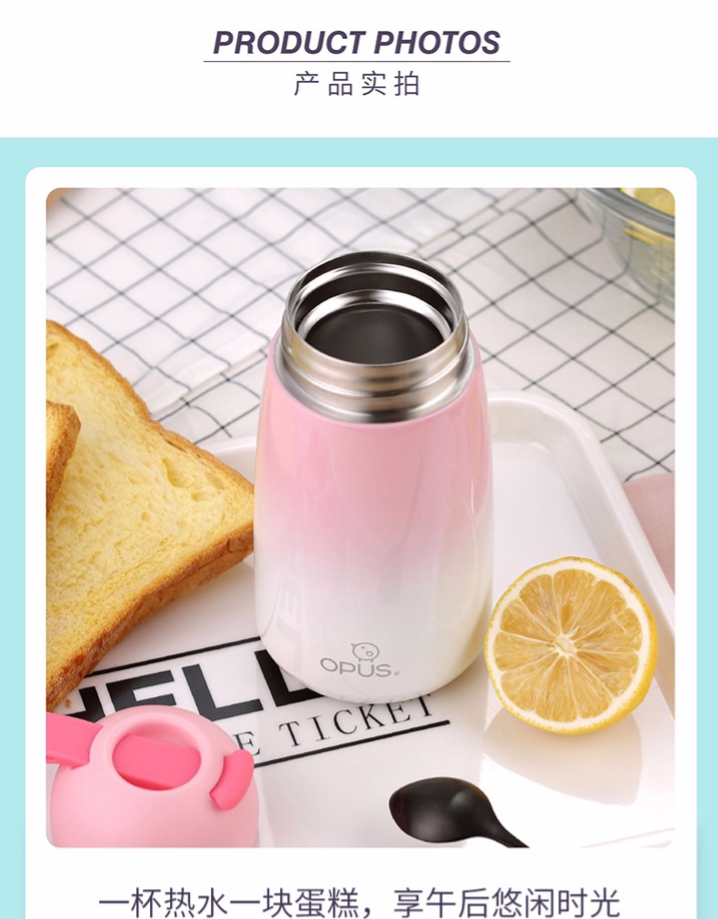 opus保温水杯女学生儿童韩版清新文艺创意可爱潮流便携不锈钢杯子