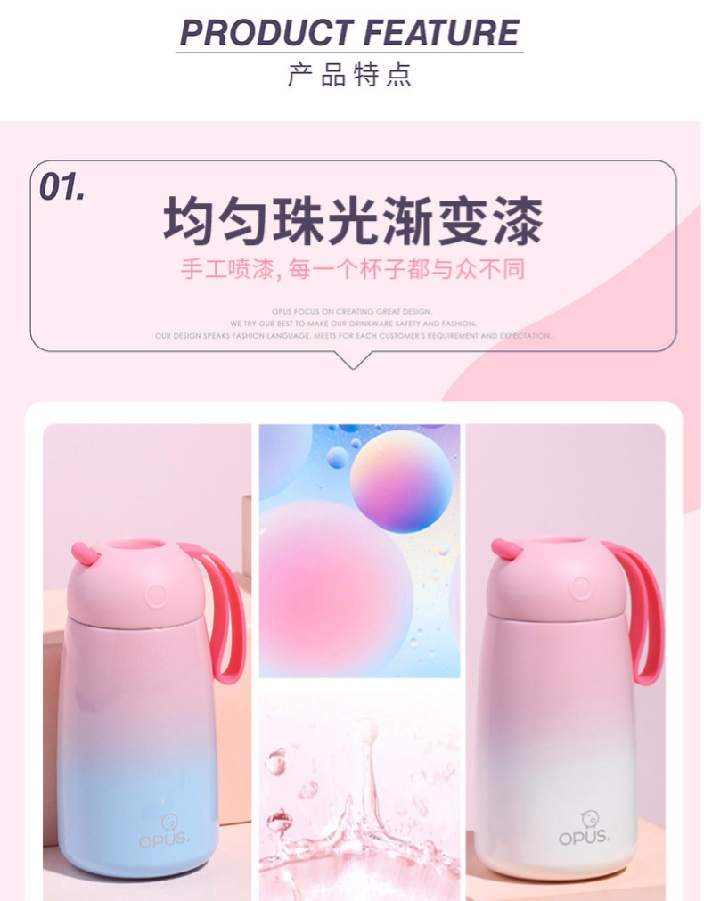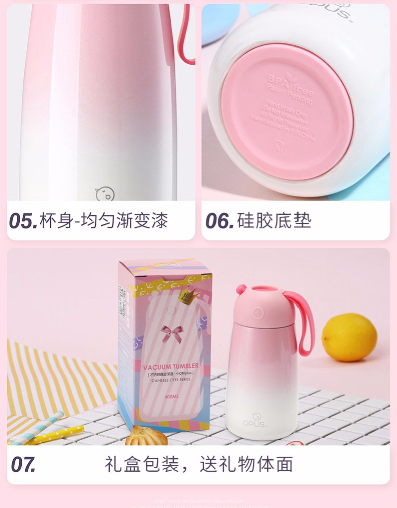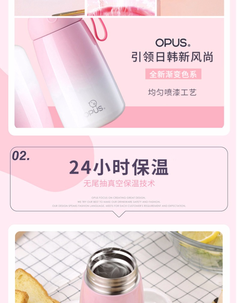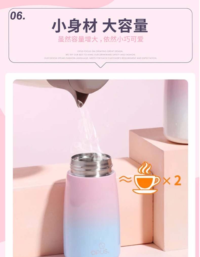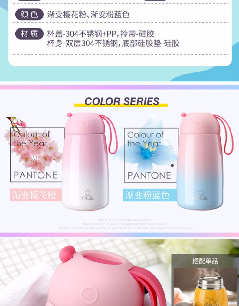 opus保温水杯女学生儿童韩版清新文艺创意可爱潮流便携不锈钢杯子