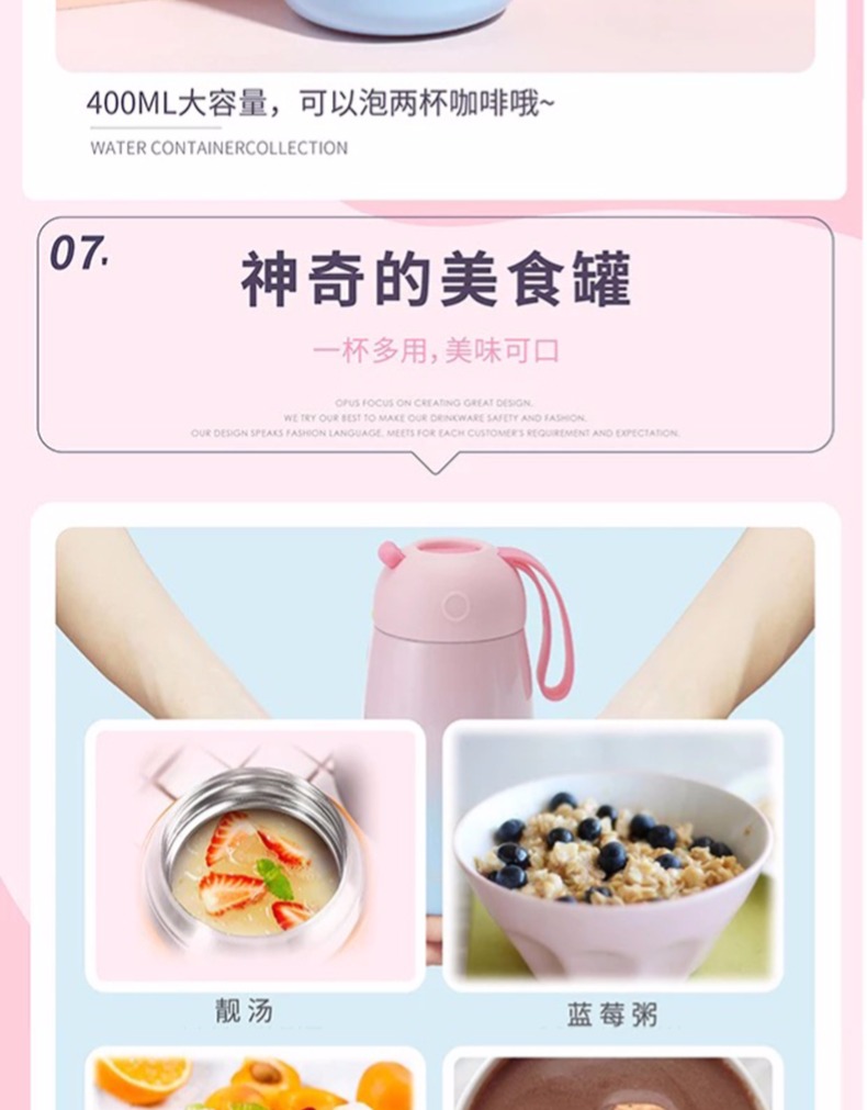 24小时长久保温,带可爱便携提绳,蓝粉碰撞,引人注目。超级可爱的杯子造型,如你一样的粉嫩脸庞十足少女。小女生怎能错过,带它闯天涯,生活美美哒【赠运费险】