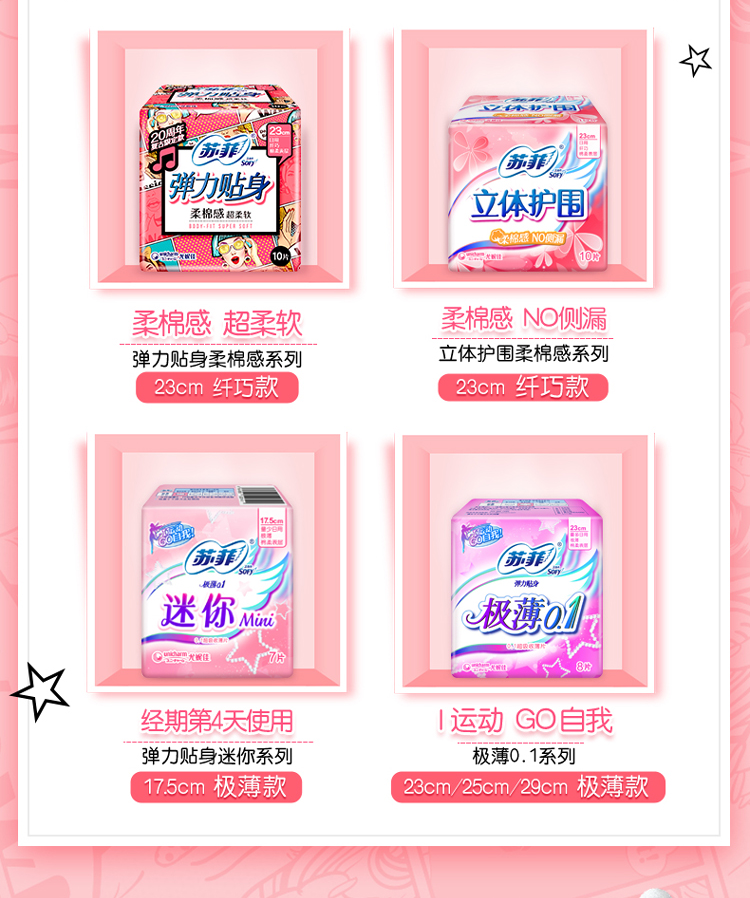 【第二套再减20】关晓彤代言!超薄吸收片0.1cm,柔软触感,小身材大吸收,运动中也能随心而动,生理期零负担,认准苏菲品牌,品质有保障。【赠运费险】