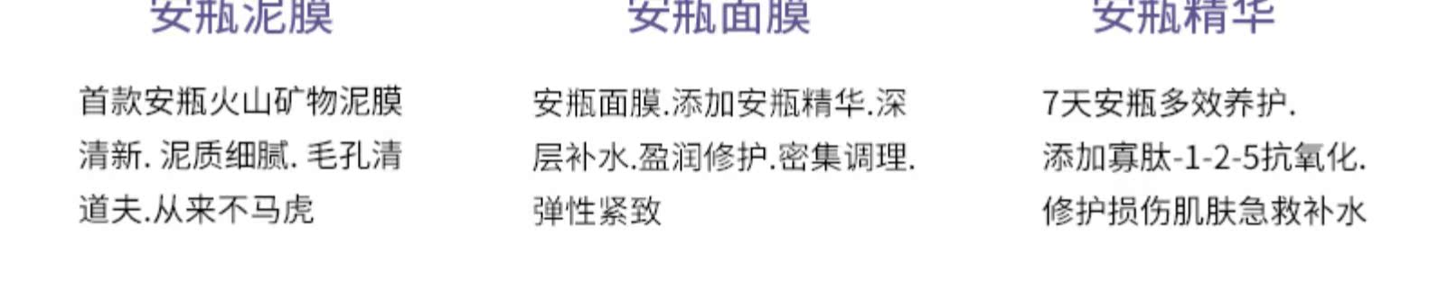 一款安瓶精华膜泥,深层清洁,控油,收缩毛孔。专注面部护理二十年,解决油脂旺盛,黑头粉刺,痘痘痔疮,肤色暗黄~