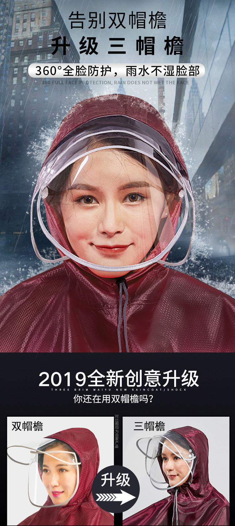 【抖音爆款】三帽檐头盔雨衣,360度防风防雨防雪,加厚牛津布,可无极变档,可隐藏,可拆卸,风里雨里加倍守护你!性价比超高,超市普通的也要30块钱,物超所值~