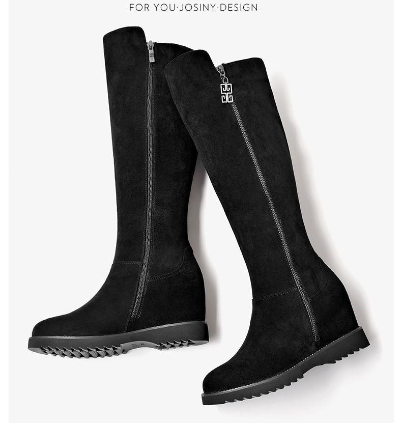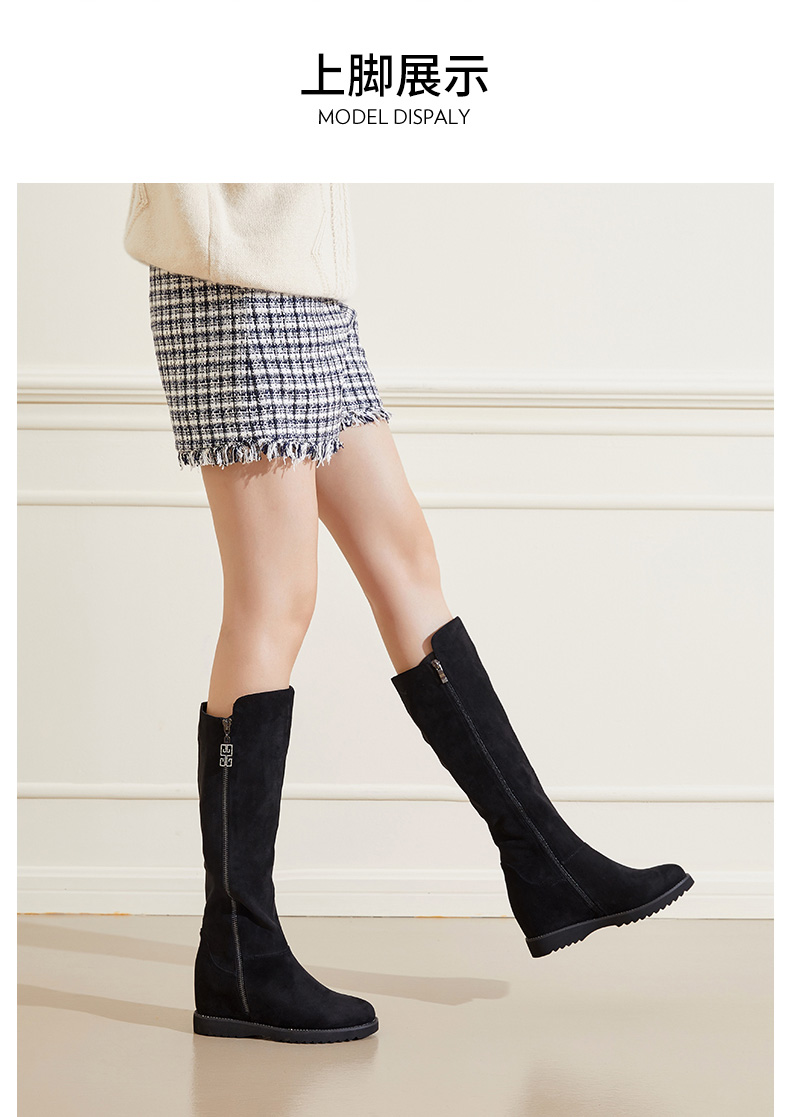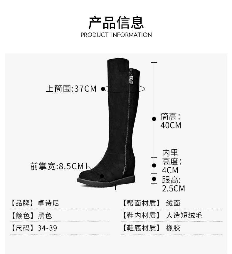 卓诗尼2019冬季新款小辣椒长筒单靴内增高骑士靴侧拉链长靴子