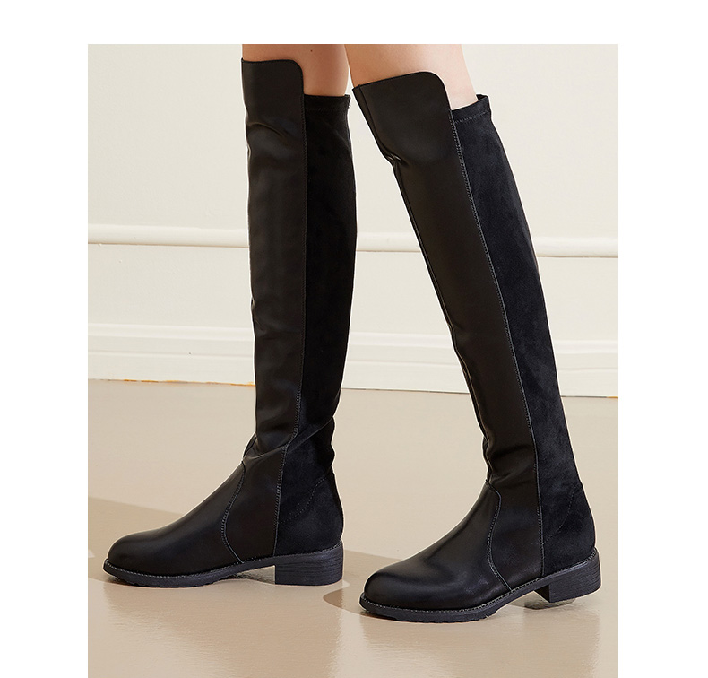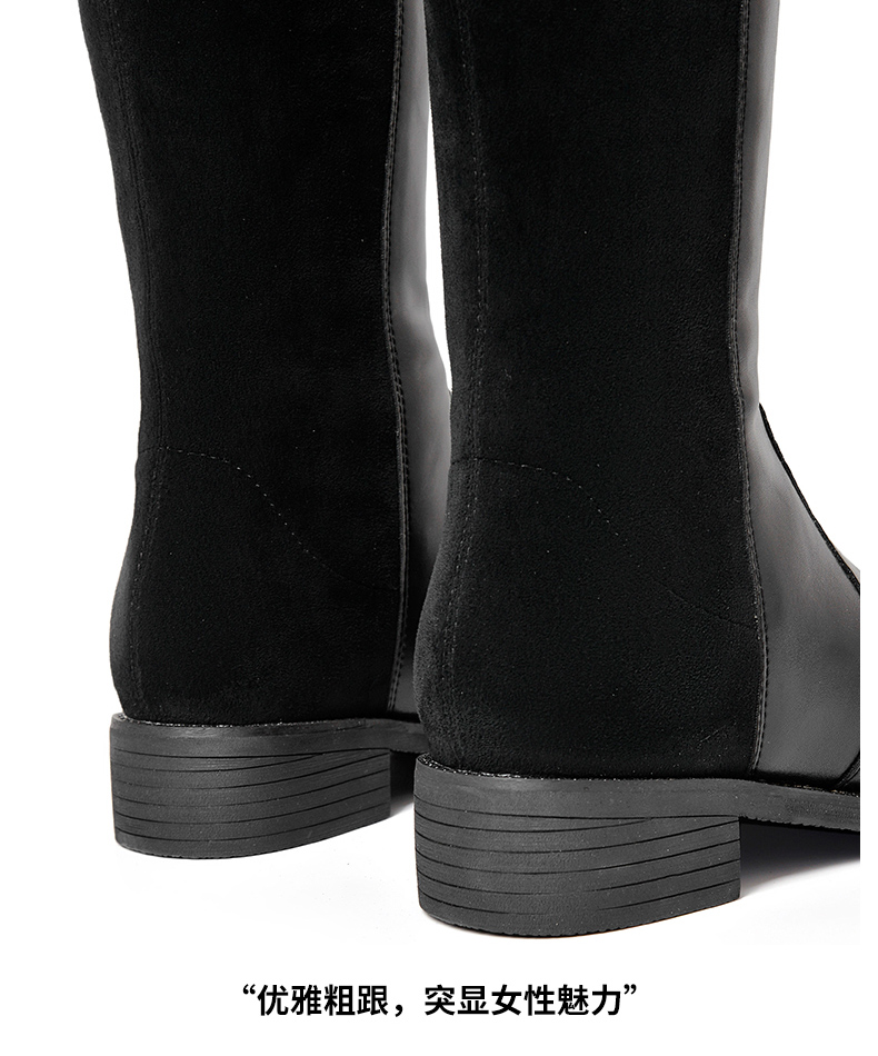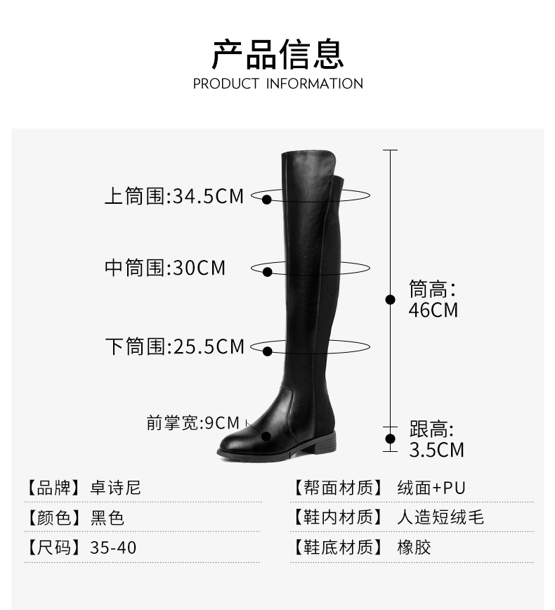 卓诗尼2019冬季新款小辣椒过膝冬靴粗跟百搭套筒时装靴女长筒靴子