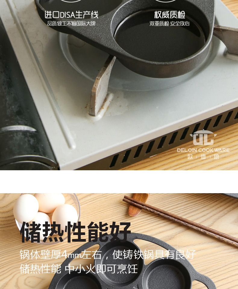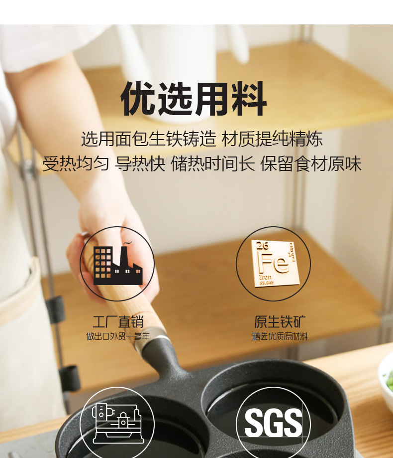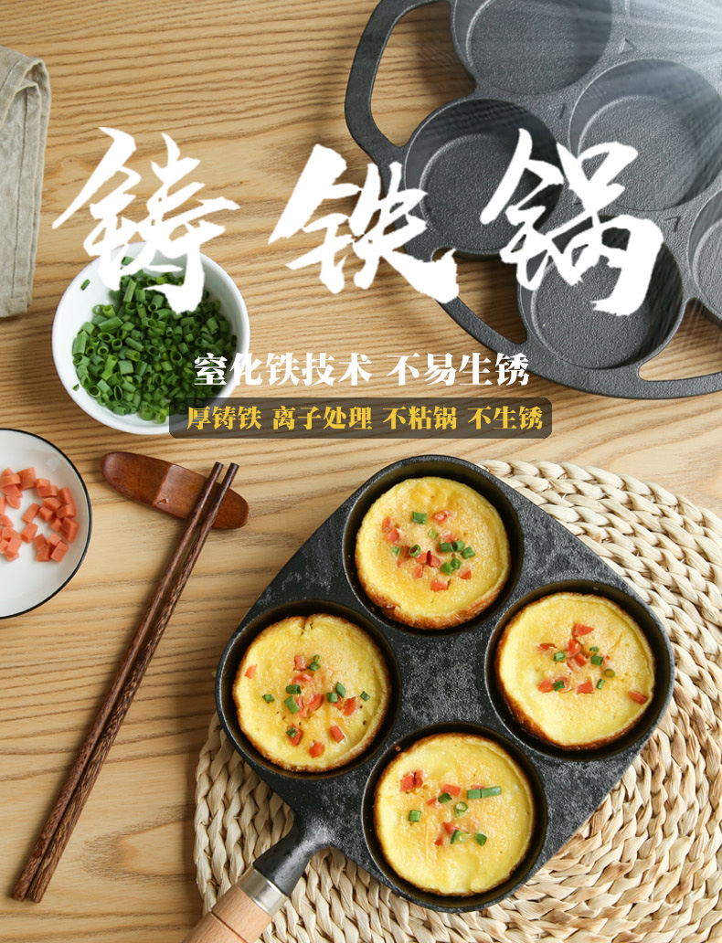 铸铁材质,匠心工艺,煎蛋锅,蛋饺锅,鸡蛋汉堡模具无涂层不粘锅铸铁锅平底锅早餐锅,电磁炉燃气灶通用!健康烹饪,轻油少烟易清洗,煎蛋煎饼煎牛排,一家四口都有的吃~