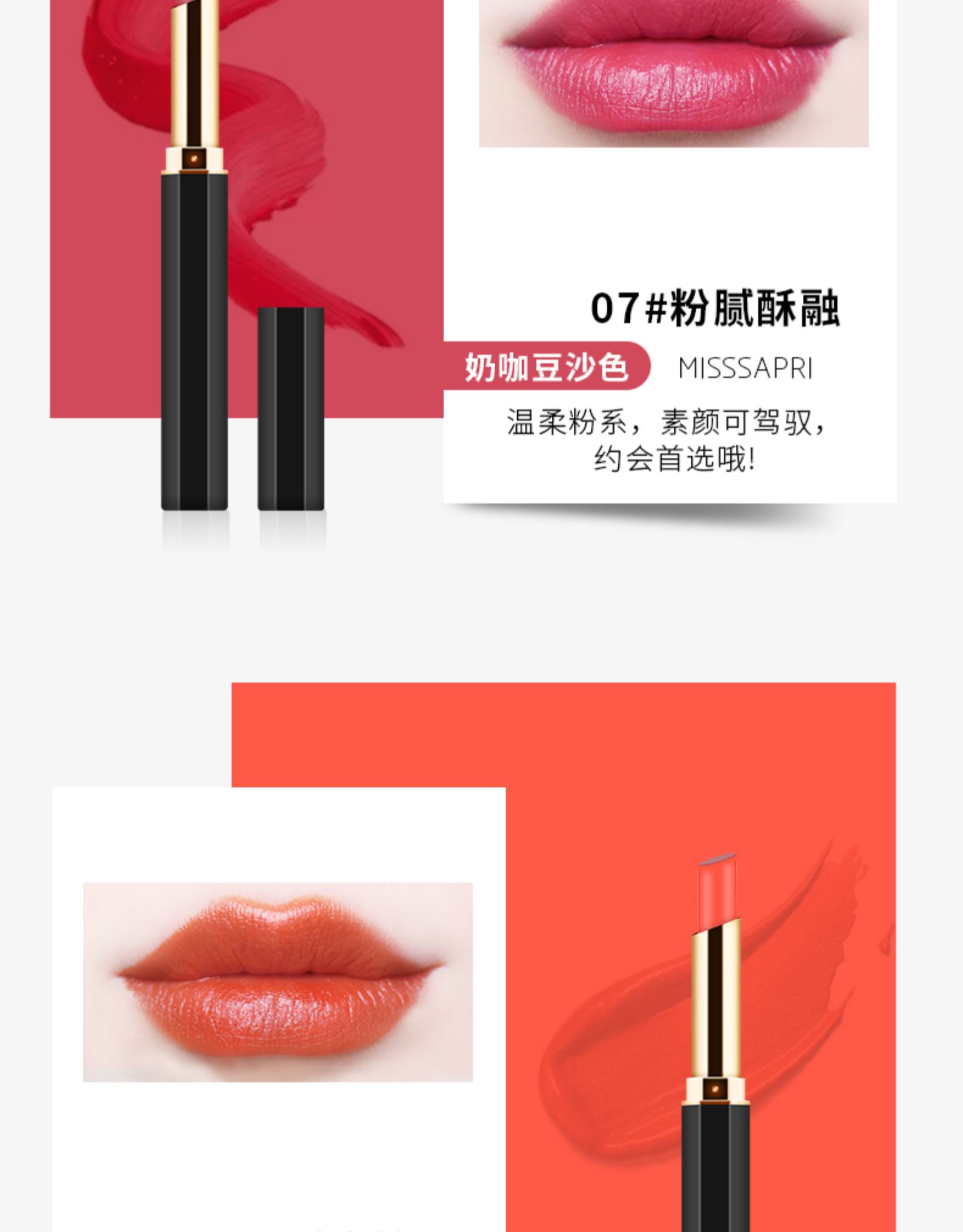 【沙织小姐】炫彩猫学生款口红,多色可选,不拔干,轻盈不厚重,涂抹于双唇之间的致命诱惑,赋予你自身女性魅力,轻松驾驭各种场合!