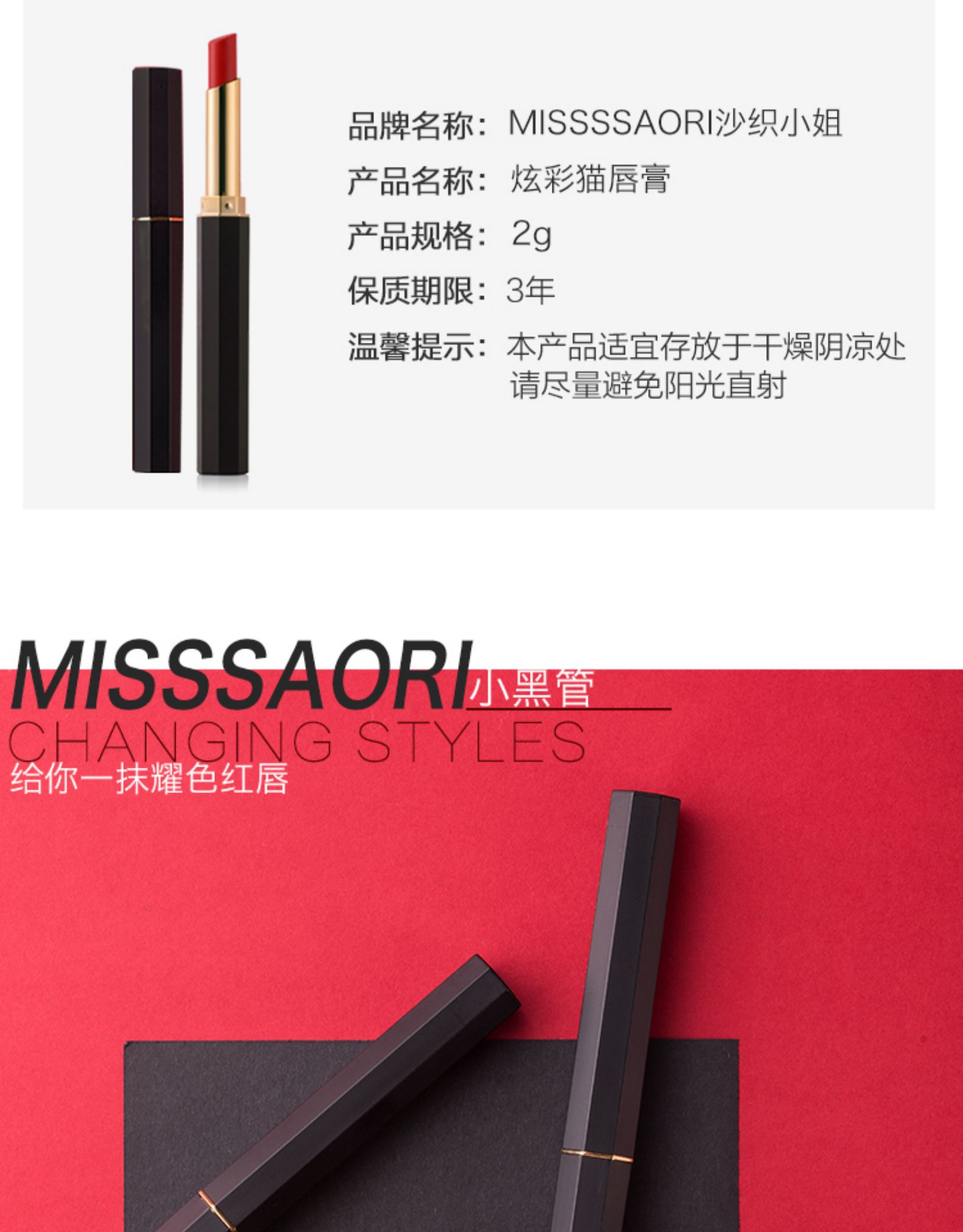 Misssaori/沙织小姐炫彩猫口红学生款持久保湿唇膏女平价小众品牌