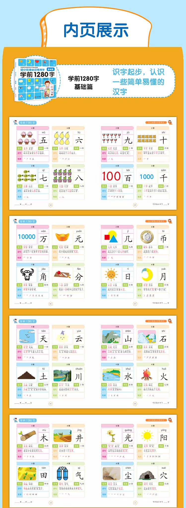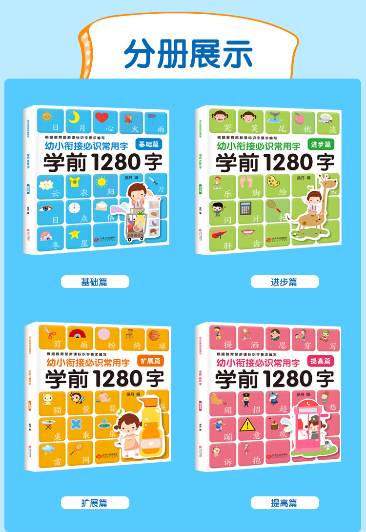 学前1280字4册识字卡片3-6岁学龄前儿童书籍幼小衔接幼儿园小班教材用书初学者全套大班升一年级幼儿早教书有图识字大王宝宝认字书