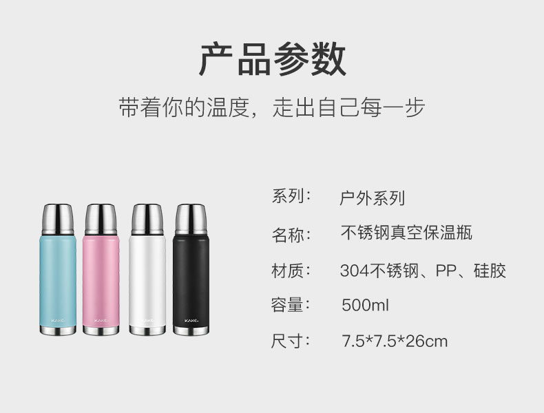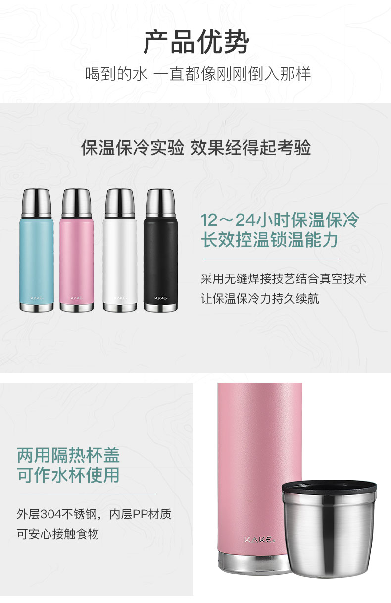 卡克保温杯男女户外便携水杯大容量不锈钢杯子简约清新学生杯子