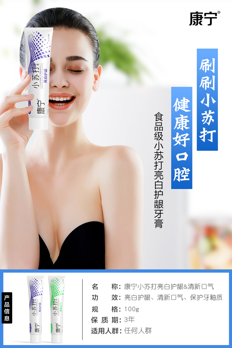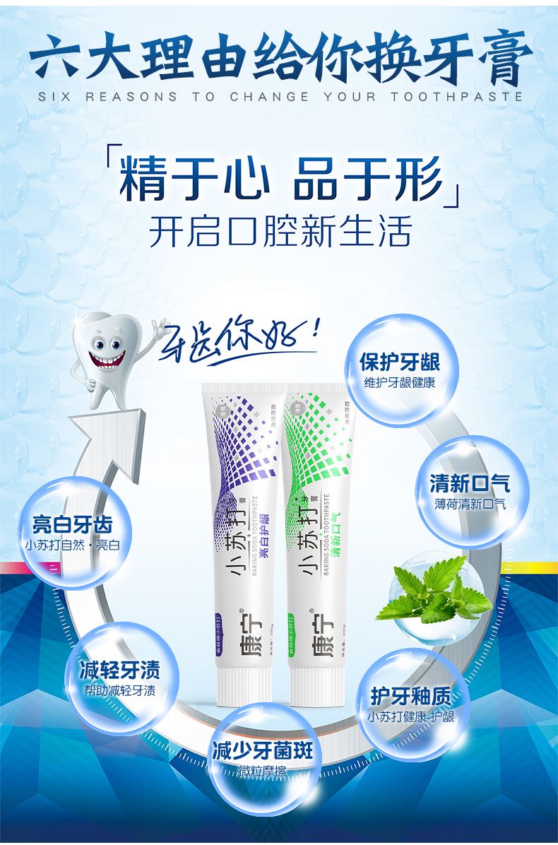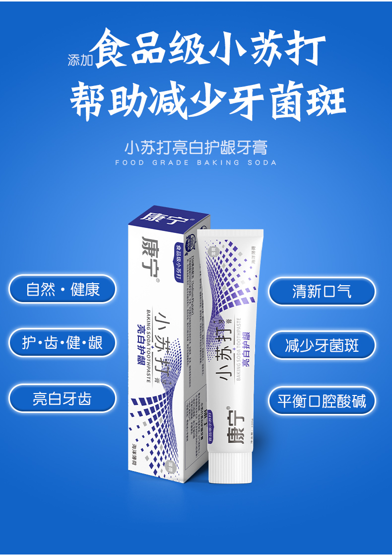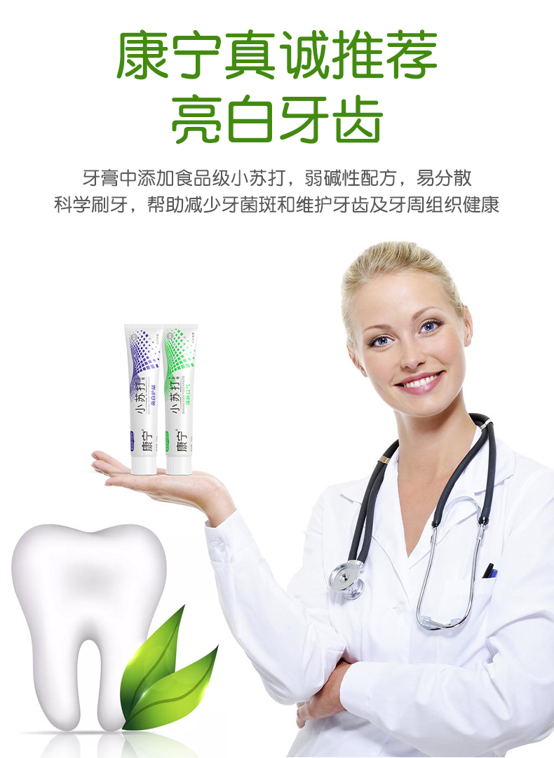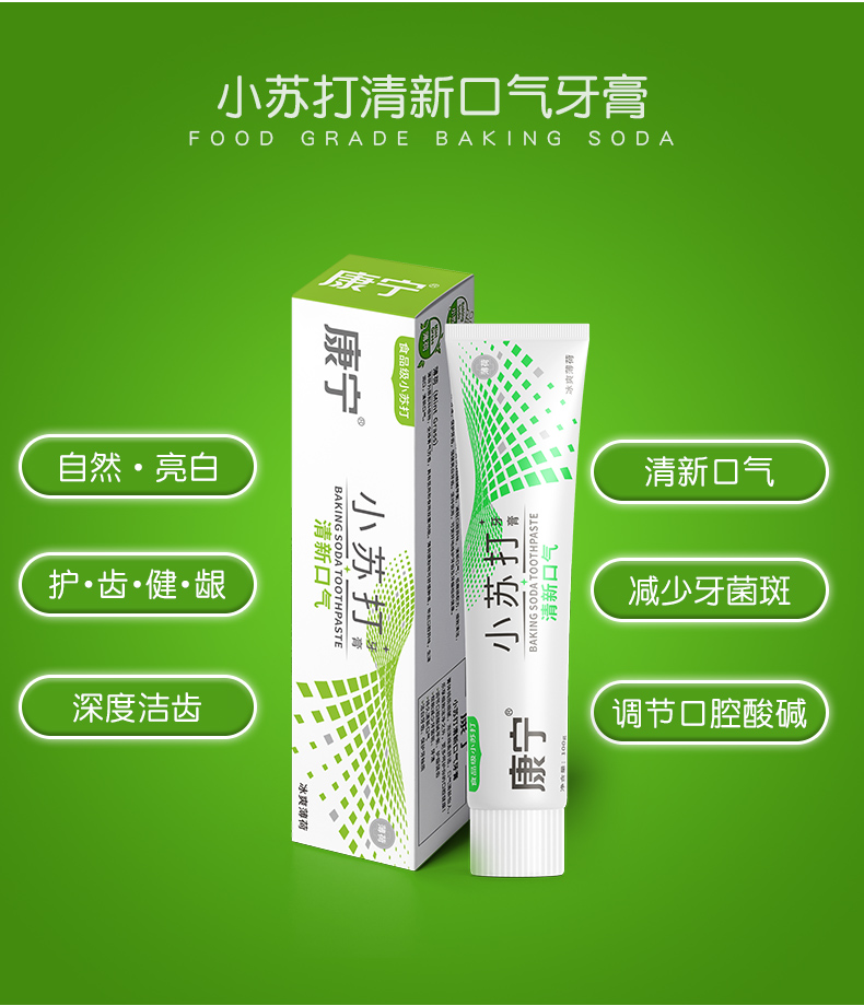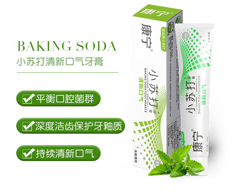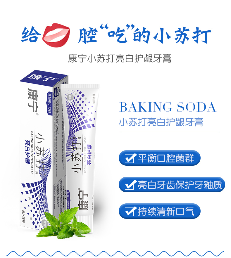 康宁小苏打牙膏2支装 薄荷清新口气减轻牙渍亮白护龈家庭装牙膏