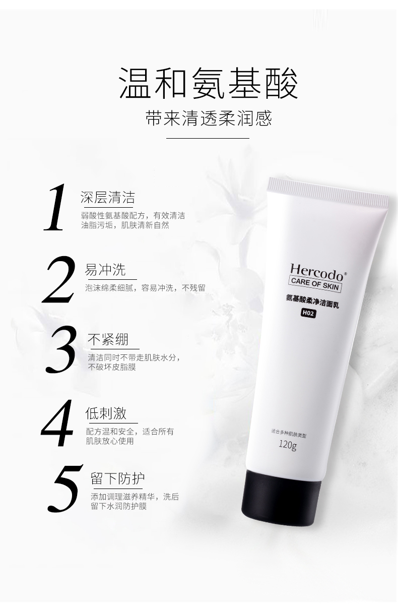 HERCODO/草安堂氨基酸柔净洁面乳 深层清洁毛孔 温和控油洗面奶女