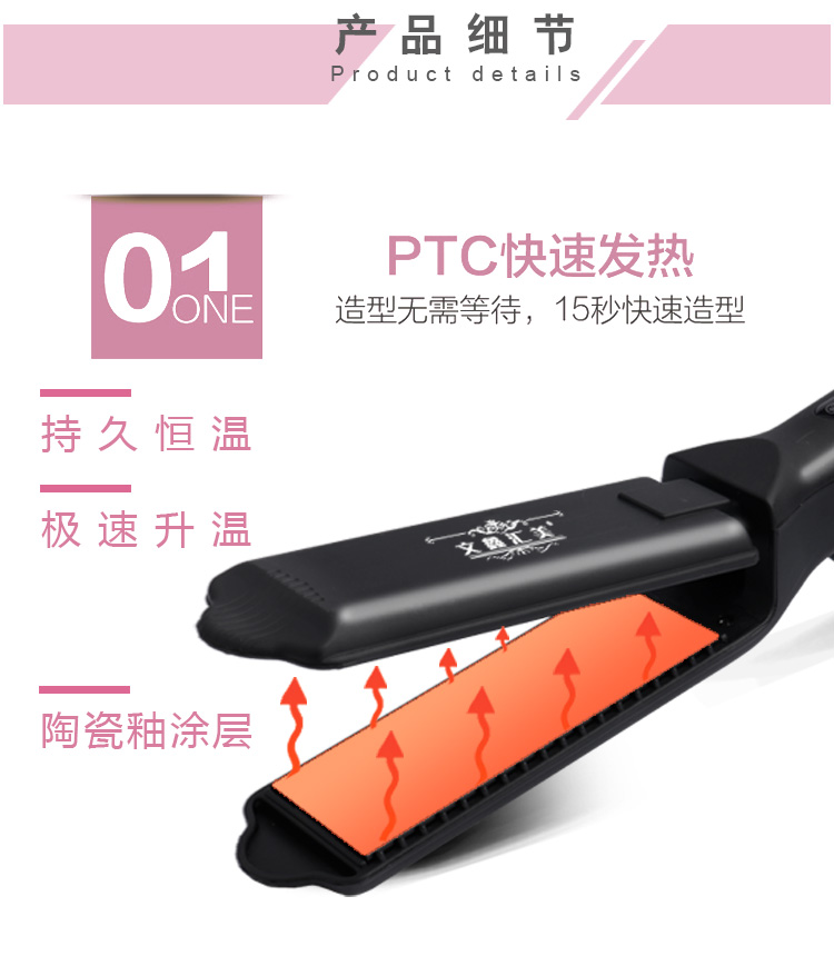 国内品牌,轻松造型,直卷两用,水润不伤发,恒温护发,快速升温,性感女郎必备,陶瓷涂层,4档智能温控,快速发热,安全耐用,受热均匀,安全不伤发,直发、玉米烫轻松搞定!