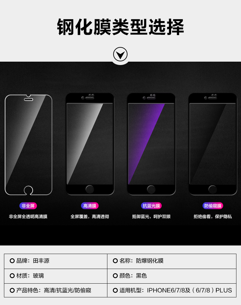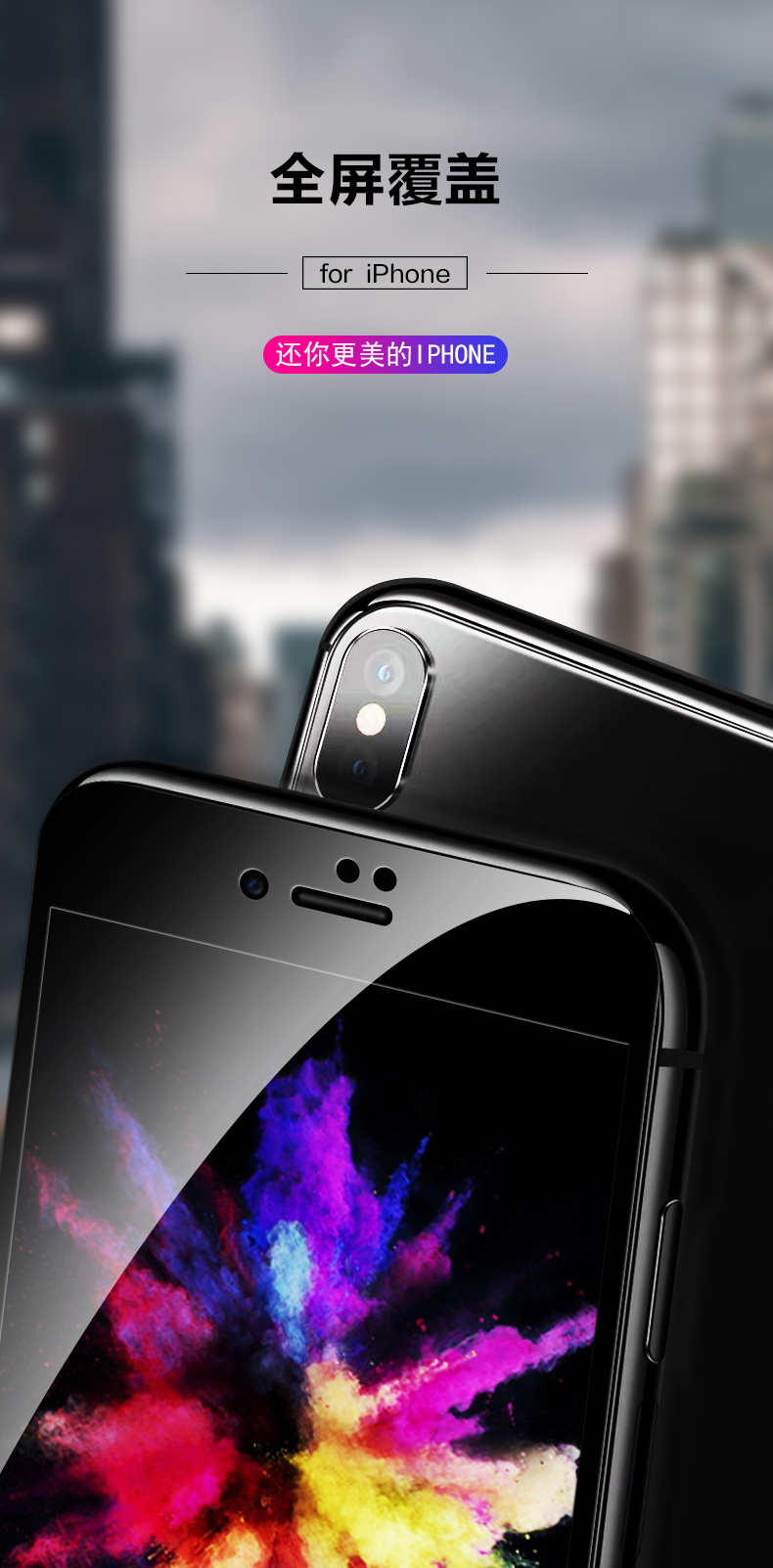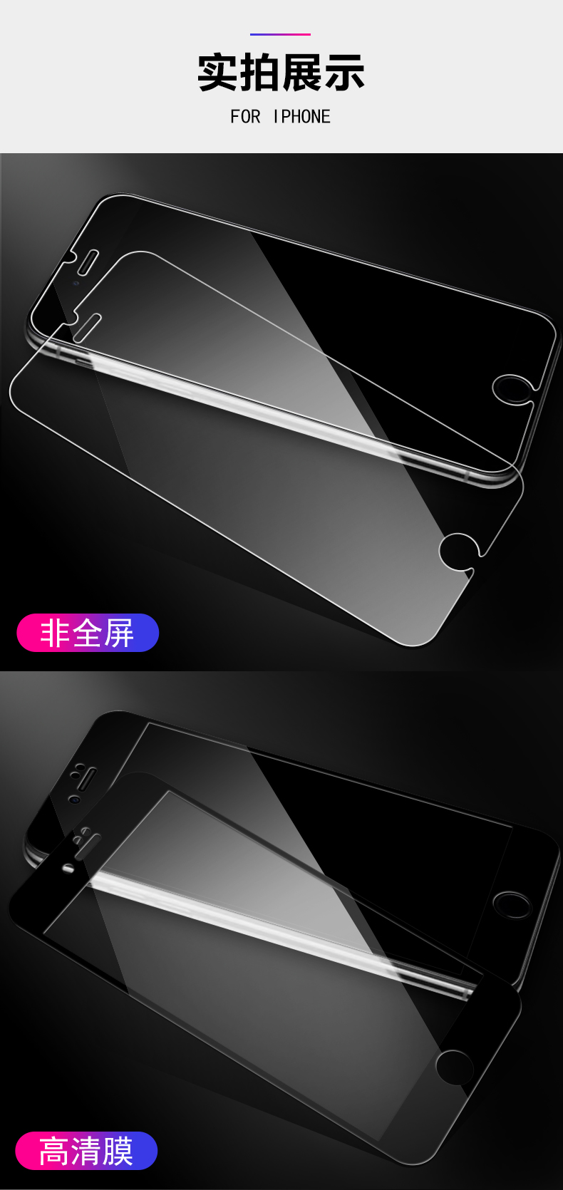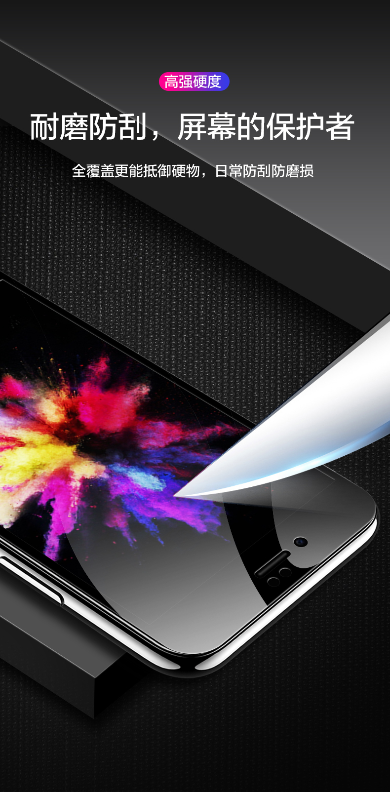 苹果系列钢化膜,真机实测,1:1开模,全屏覆盖,9倍增强硬度,增强不碎边,弧面工艺,触控更灵敏,滴水成珠,易拖动,不沾指纹,防刮耐磨!