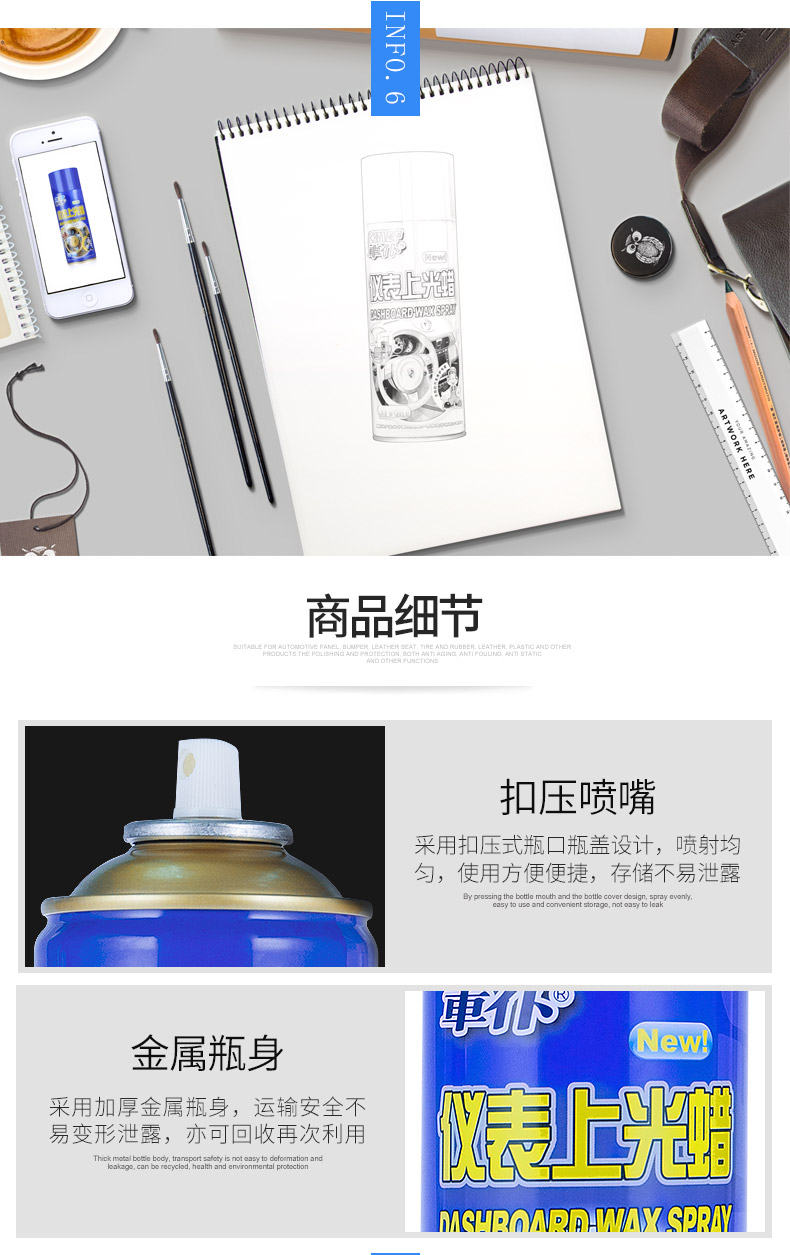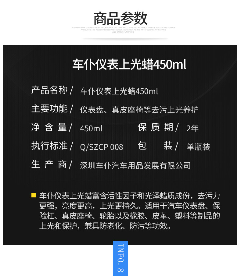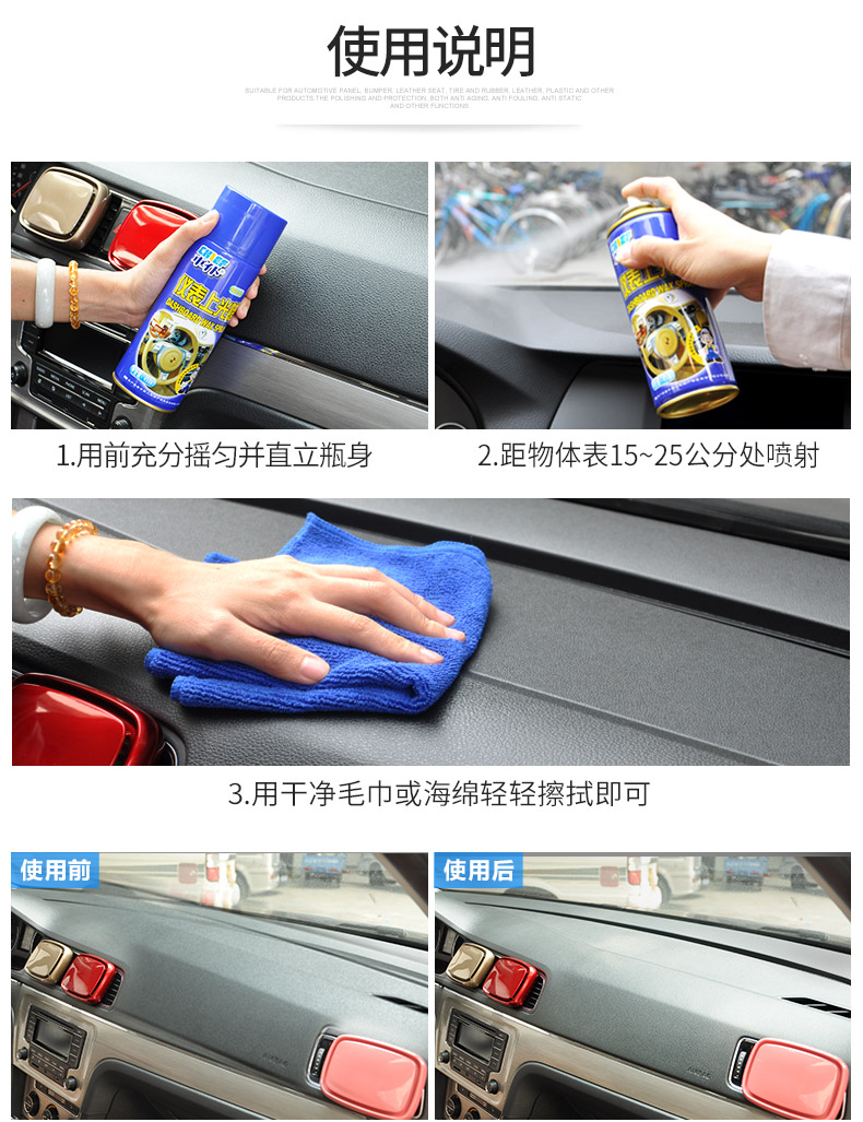仪表上光蜡,有效去污,上光持久,深层滋养,适用范围广,车居两用~