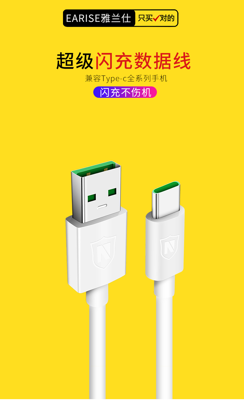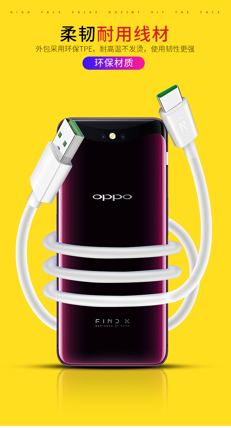 oppo闪充数据线Type-c数据线oppor17充电线oppofind x VOOC闪充数据线Reno K3快充数据线雅兰仕原装