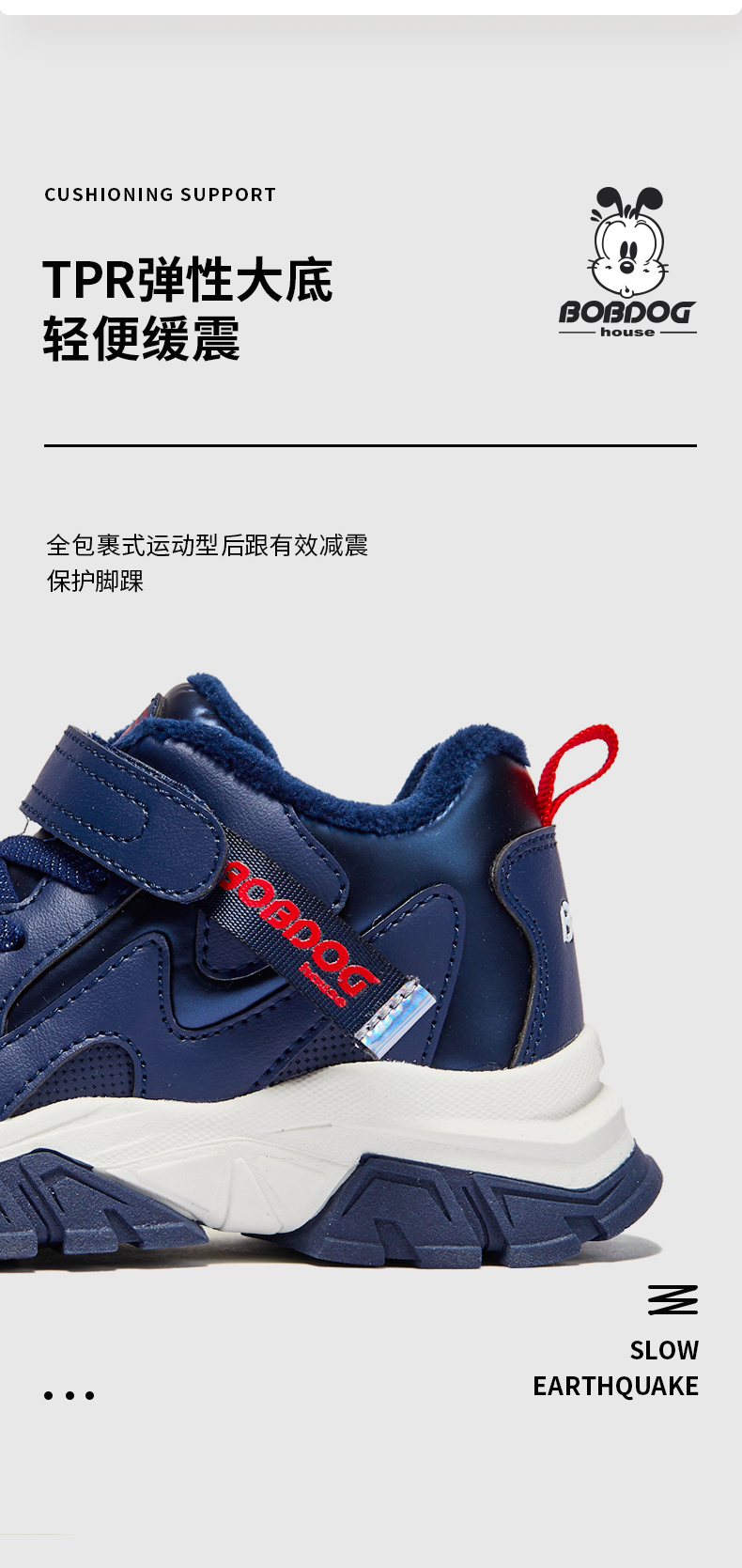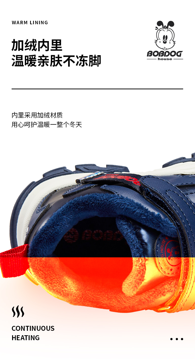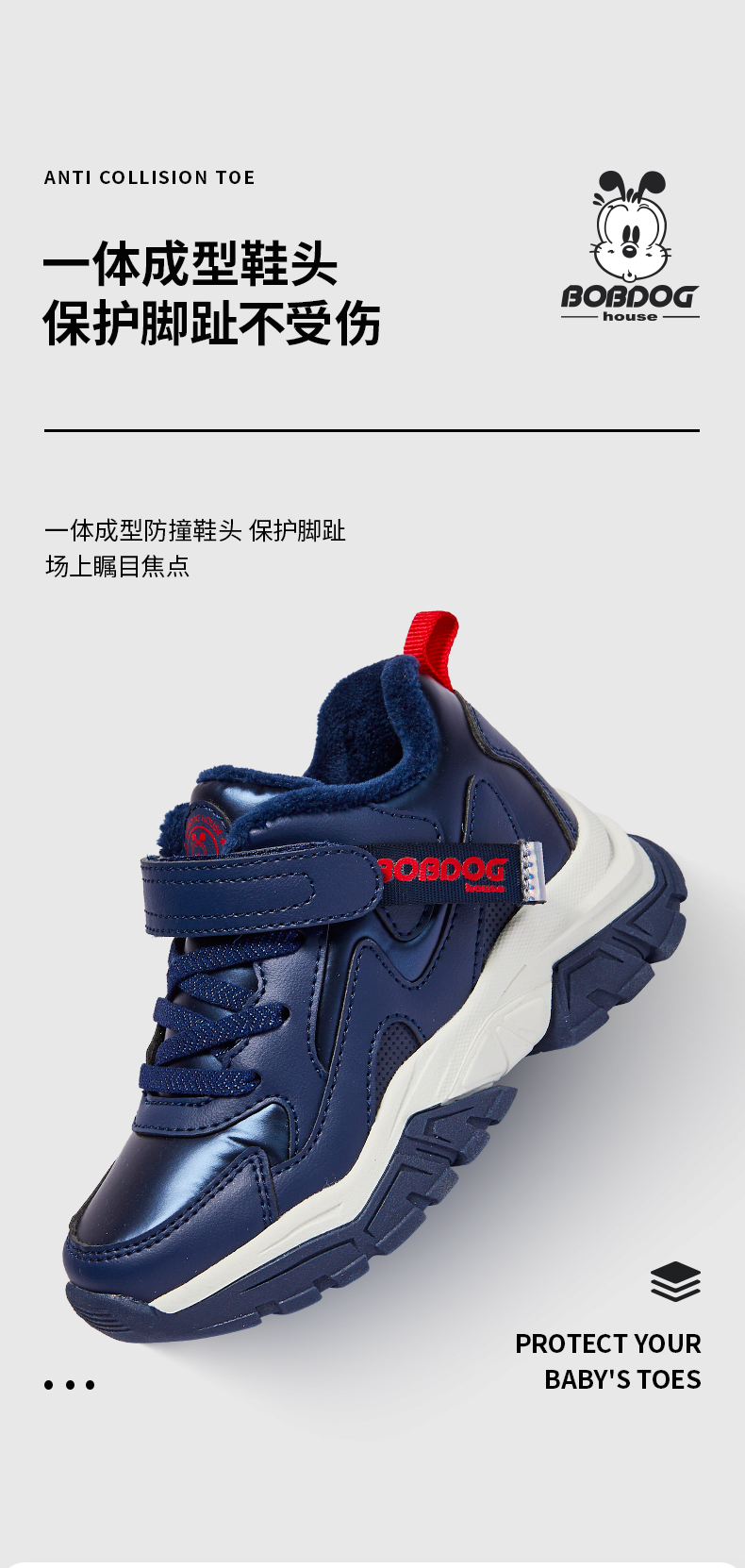 巴布豆童鞋儿童二棉鞋2019秋冬款冬季男童女童加绒加厚保暖运动鞋