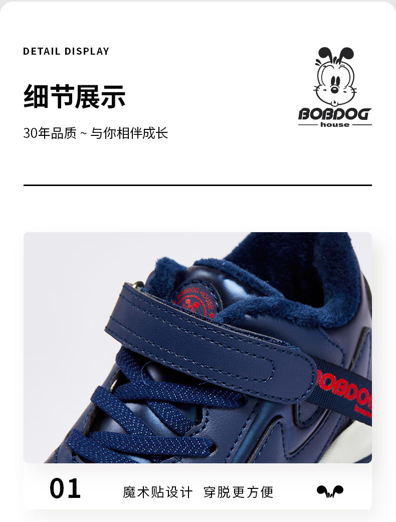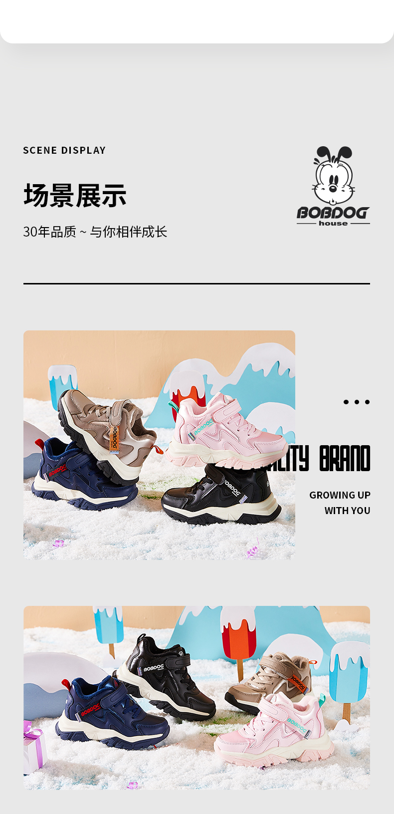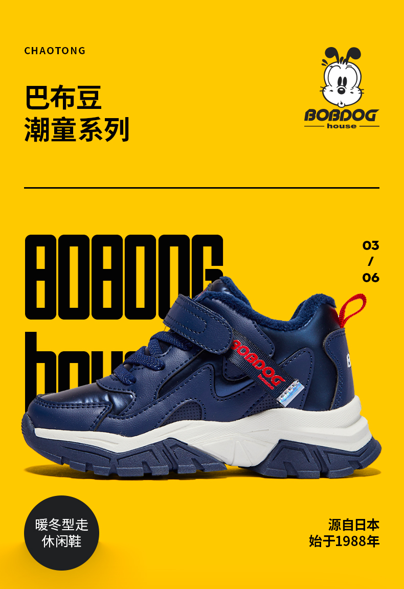 巴布豆童鞋儿童二棉鞋2019秋冬款冬季男童女童加绒加厚保暖运动鞋