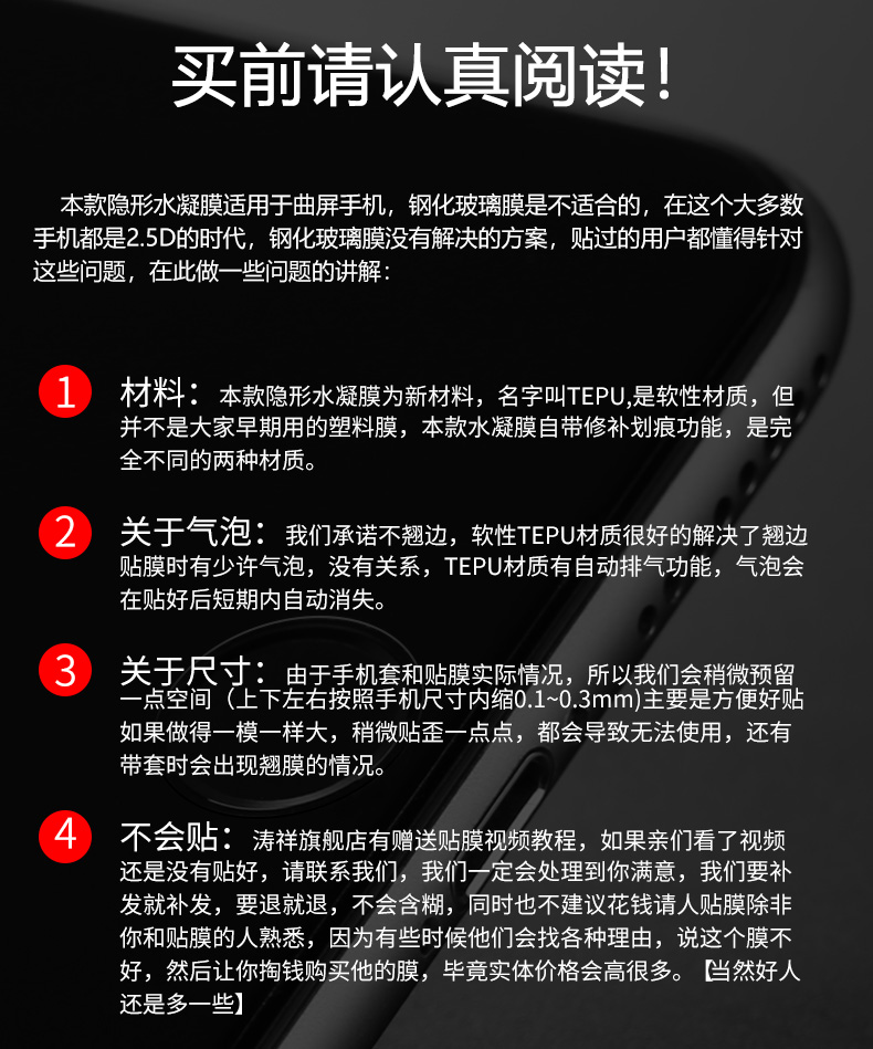 【2片装】送神器+后膜!真9D水凝膜。全屏覆盖,告别碎屏,采用纳米融合技术,24小时内划痕自动修复完整!抗蓝光,保护眼睛,无白边,无气泡,无需喷水!还原裸机手感!!
