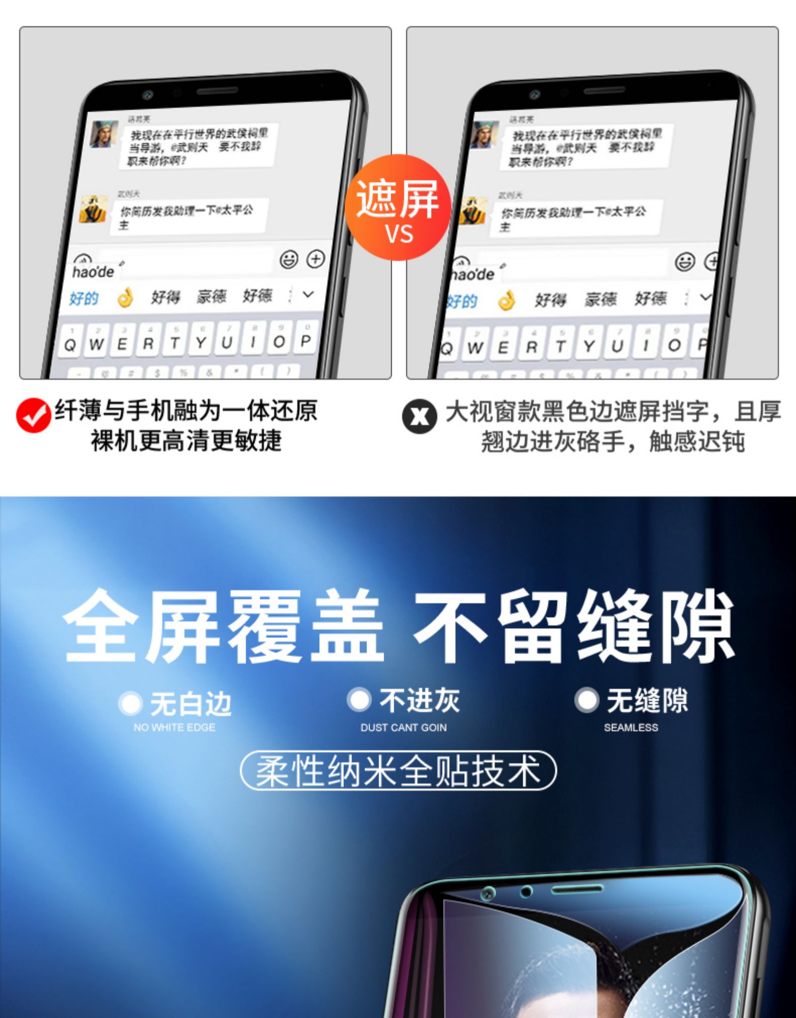 【2片装】送神器+后膜!真9D水凝膜。全屏覆盖,告别碎屏,采用纳米融合技术,24小时内划痕自动修复完整!抗蓝光,保护眼睛,无白边,无气泡,无需喷水!还原裸机手感!!