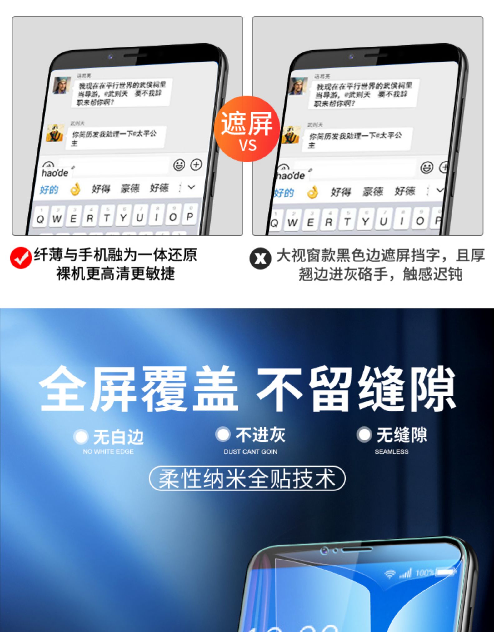 【2片装】送神器+后膜!真9D水凝膜。全屏覆盖,告别碎屏,采用纳米融合技术,24小时内划痕自动修复完整!抗蓝光,保护眼睛,无白边,无气泡,无需喷水!还原裸机手感!!