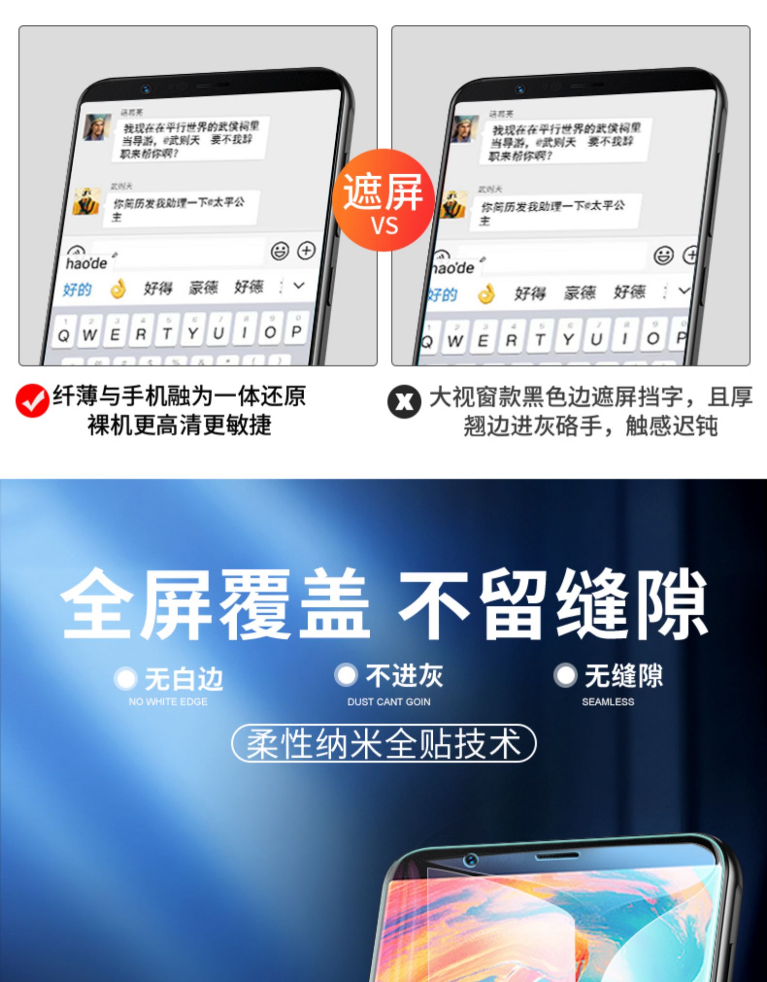 【2片装】送神器+后膜!真9D水凝膜。全屏覆盖,告别碎屏,采用纳米融合技术,24小时内划痕自动修复完整!抗蓝光,保护眼睛,无白边,无气泡,无需喷水!还原裸机手感!!