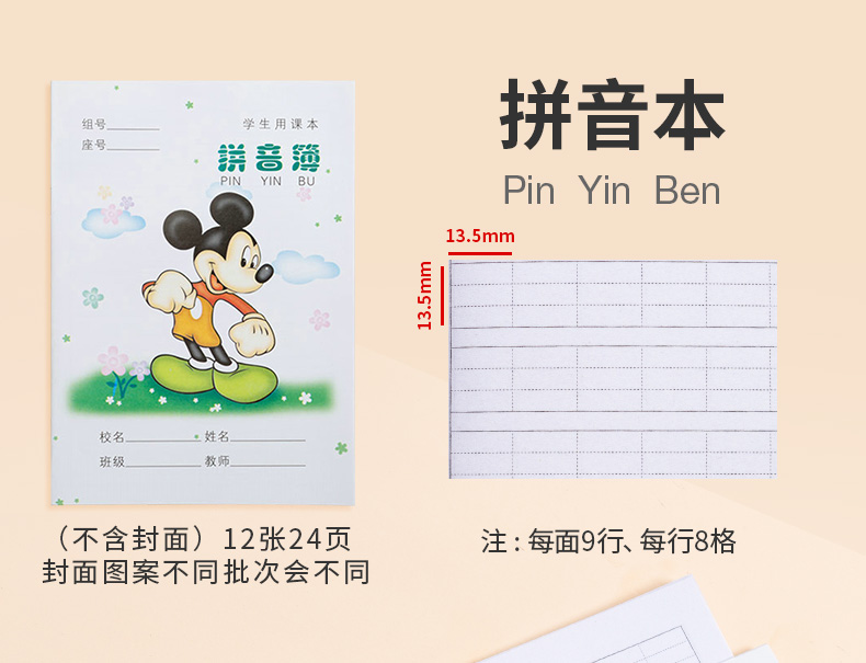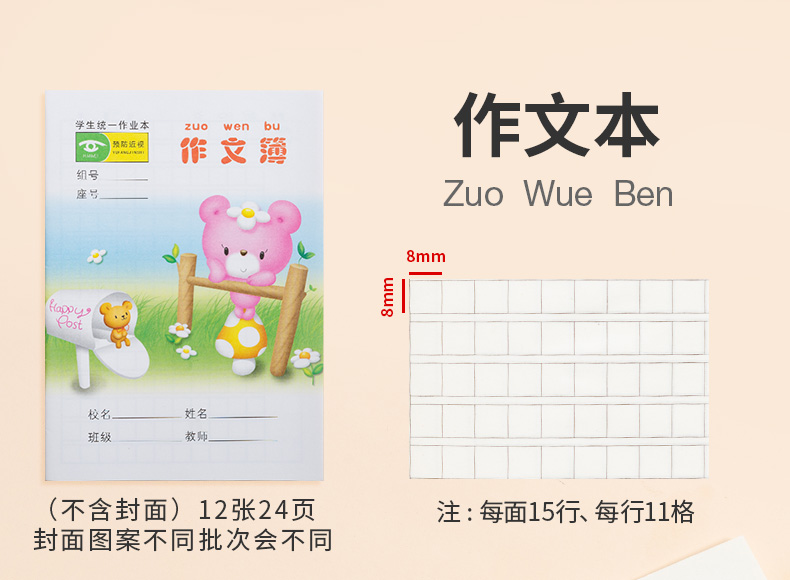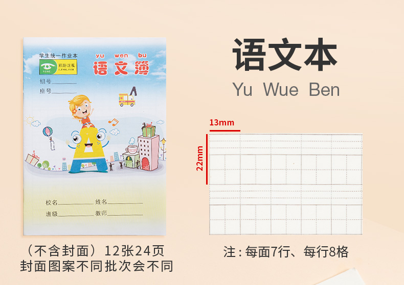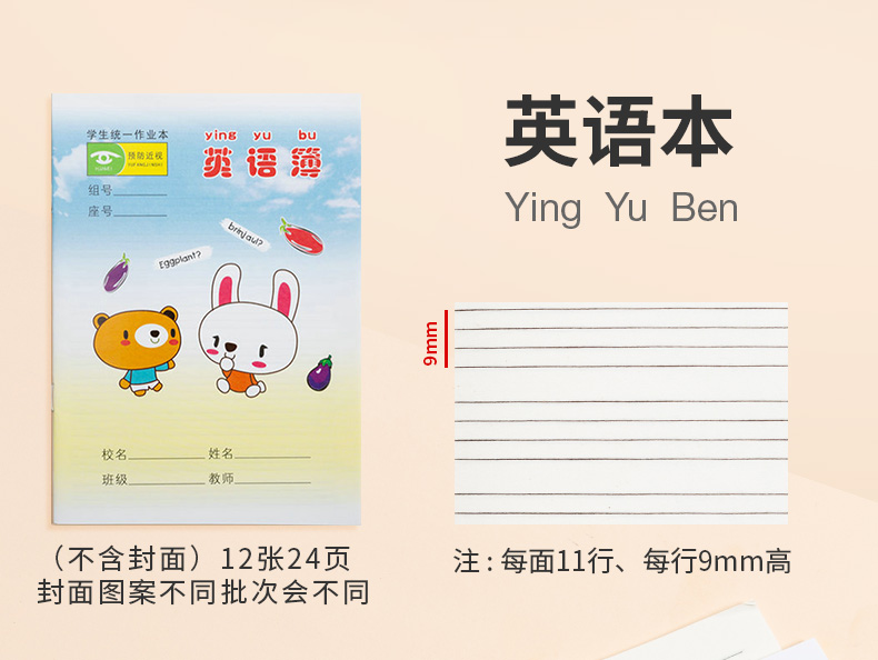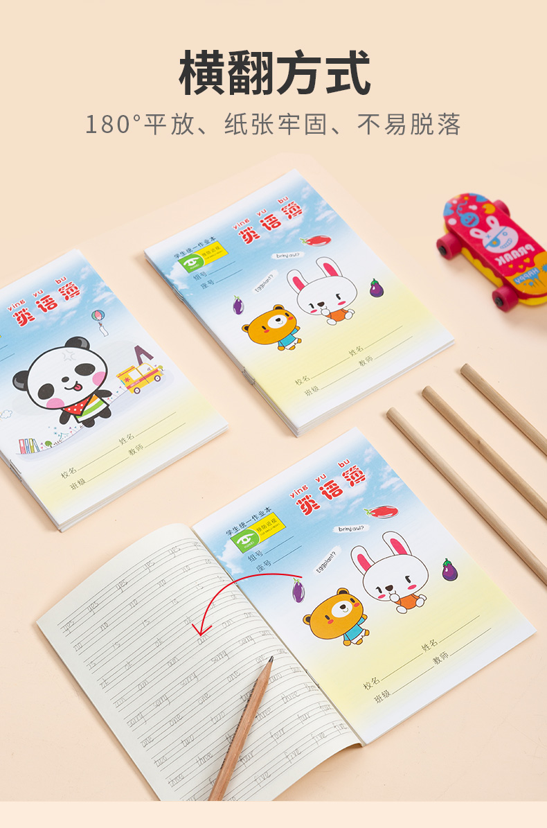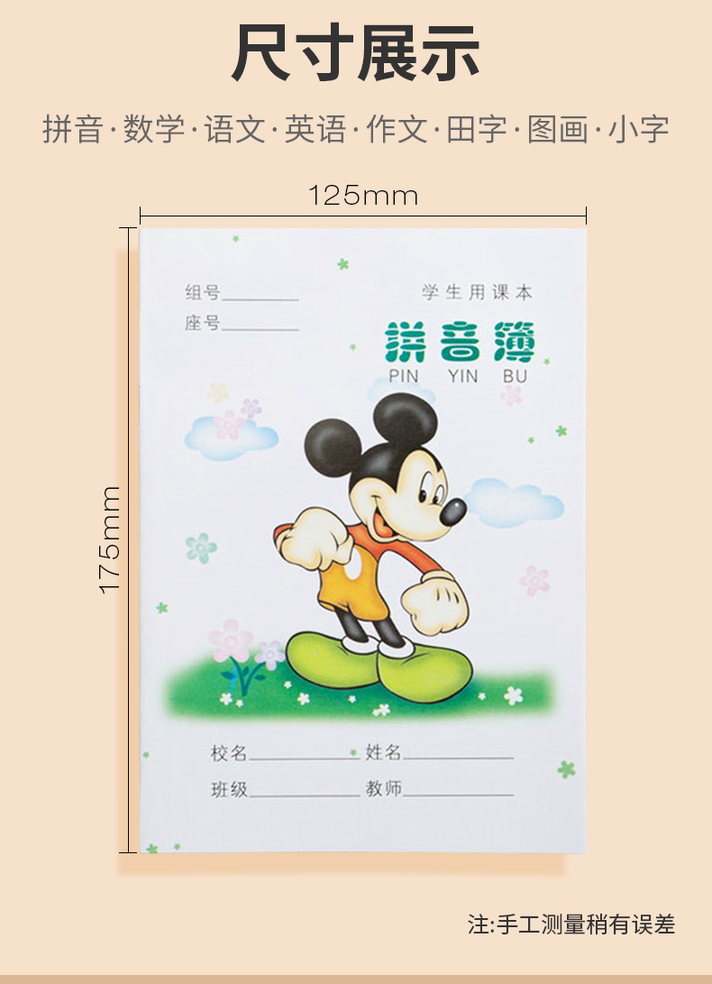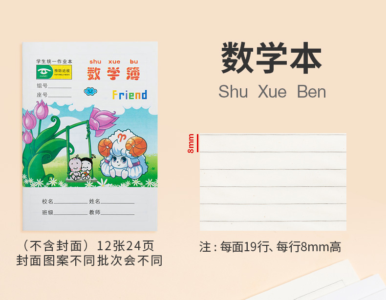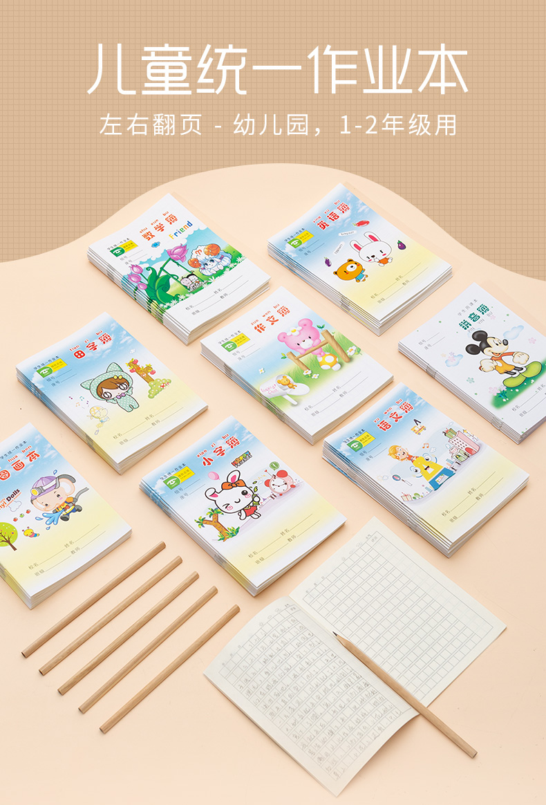【任选3本+6支铅笔】儿童学生专用本子,数学语文簿等8款可选,孩子喜欢的可爱卡通本,印刷清楚,好写不出错
