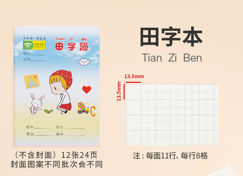 拼音本田字格练字本作业本幼儿园标准小学生字本统一写字本1-2年级一全国汉语作文本数学本子儿童英语本批发
