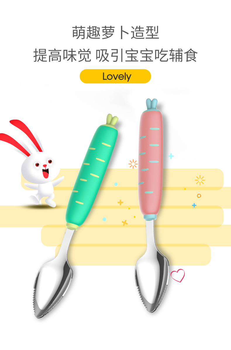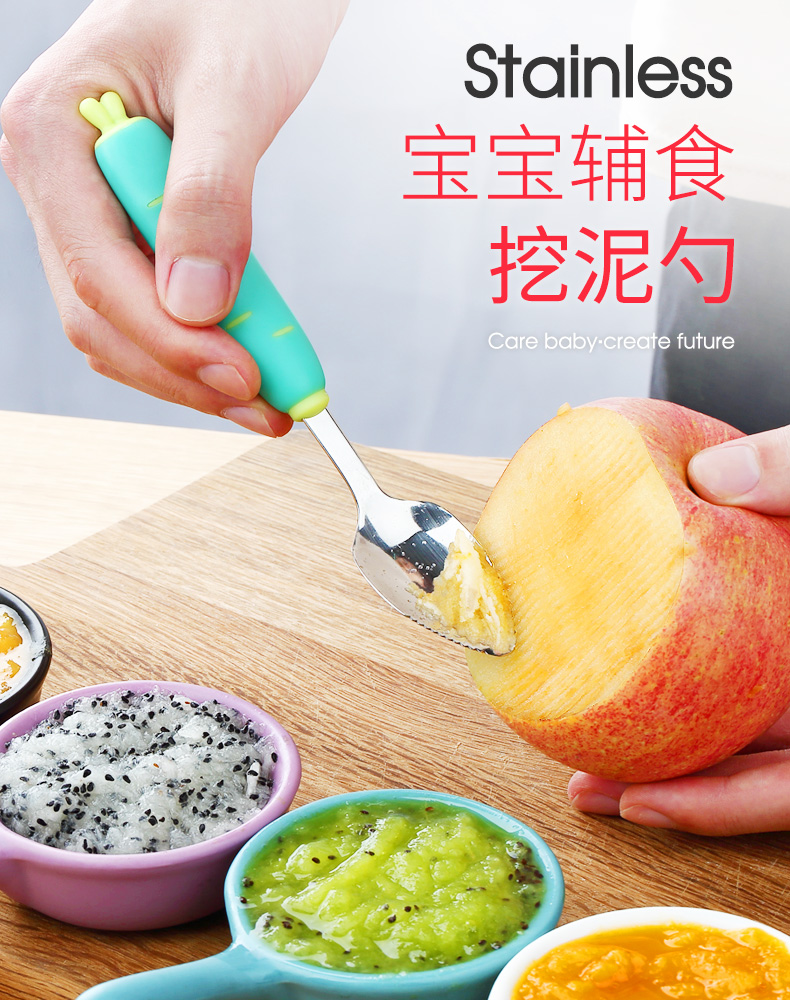 婴儿刮苹果泥勺子宝宝辅食工具不锈钢儿童餐具吃水果泥刮勺神器