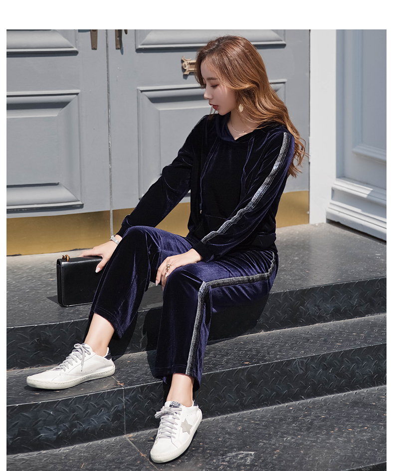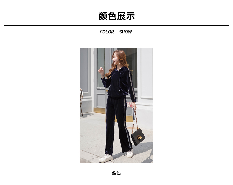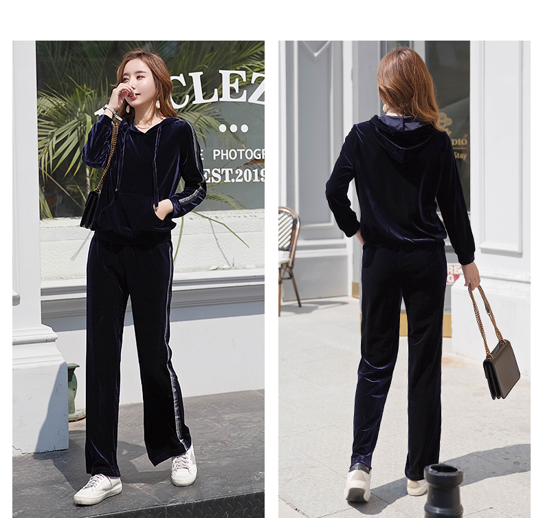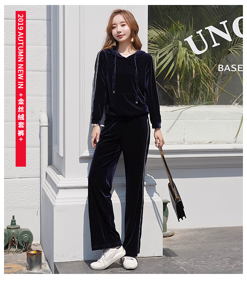 欧诗曼锦金丝绒休闲运动套装女2019秋季新款时尚两件套