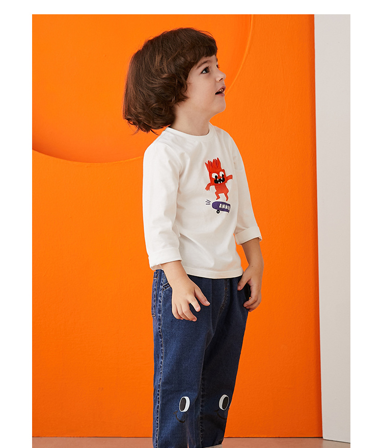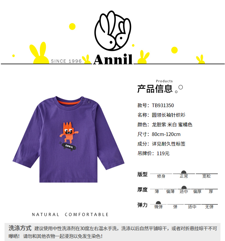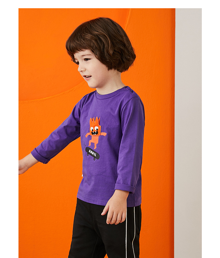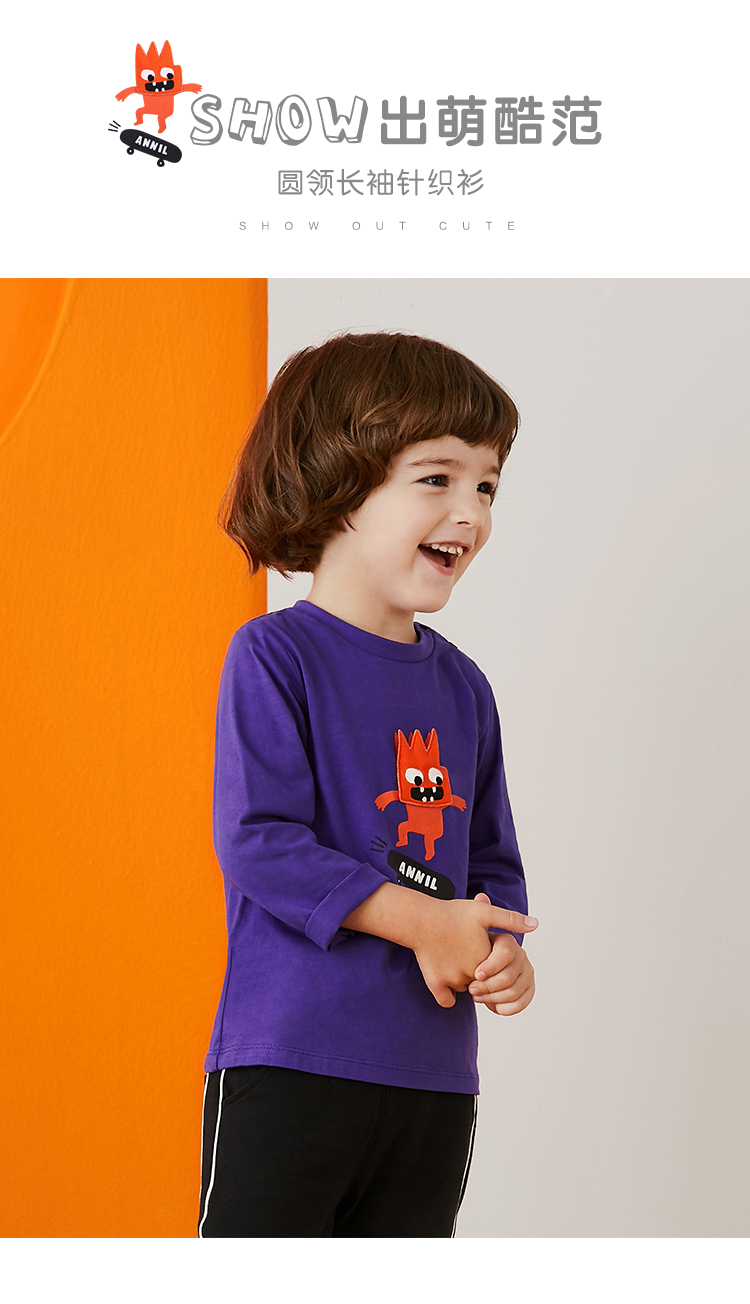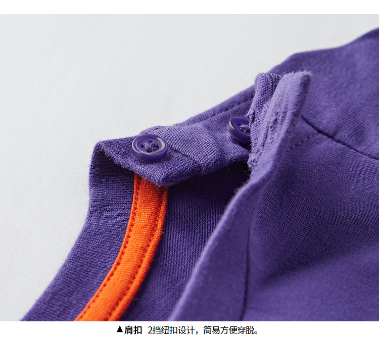 【安奈儿,业界销售过十亿的龙头型童装品牌,A股童装第1股,股票代码:002875】舒适A类纯棉,左侧肩扣细节,方便穿脱,三色可选,立体印花章仔,活泼可爱,赚足回头率