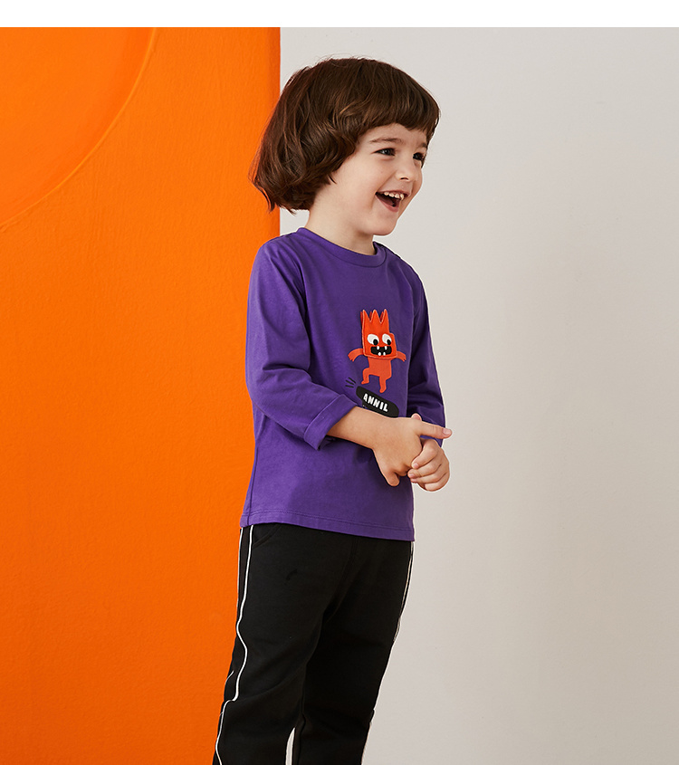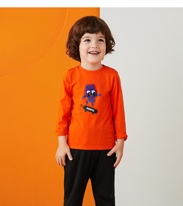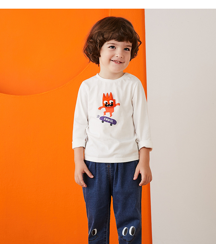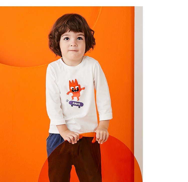 安奈儿男童T恤长袖潮童韩版纯棉宝宝打底衫薄款春秋男小童上衣3岁