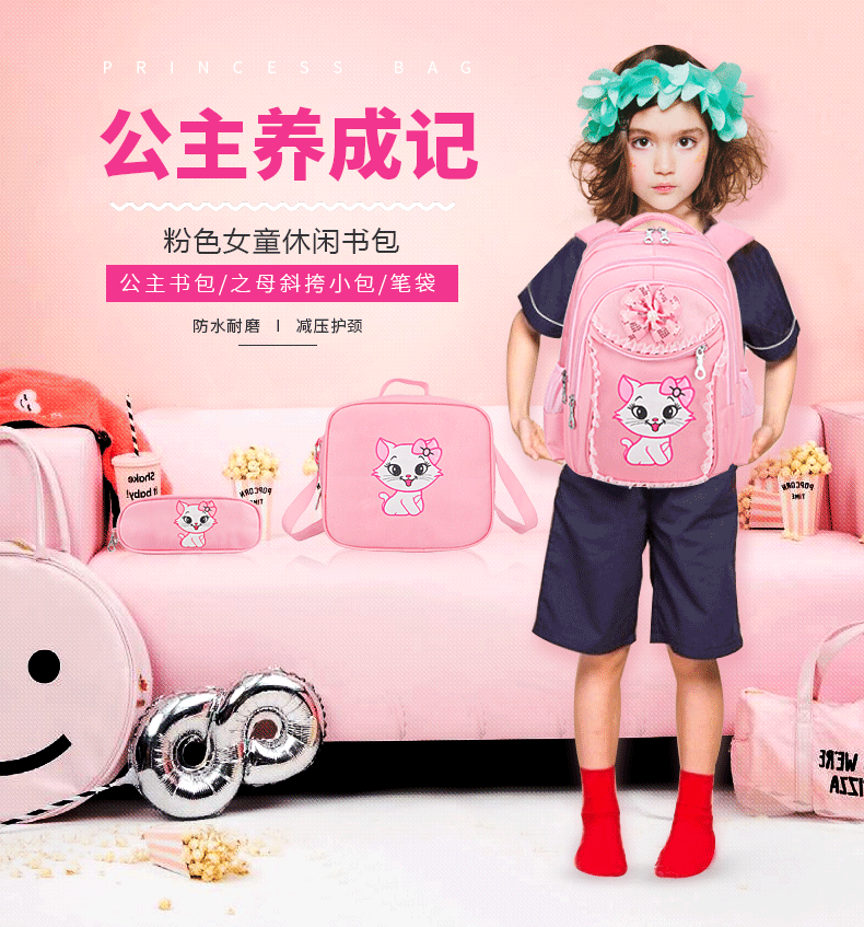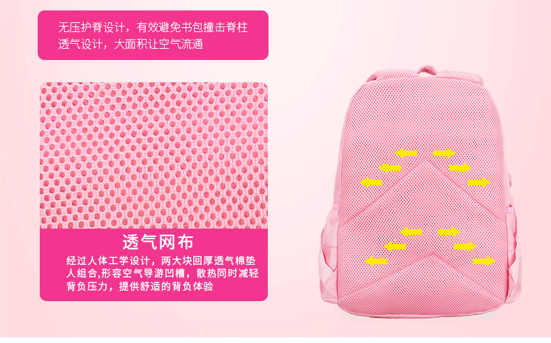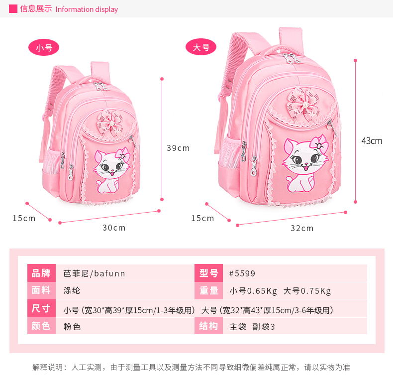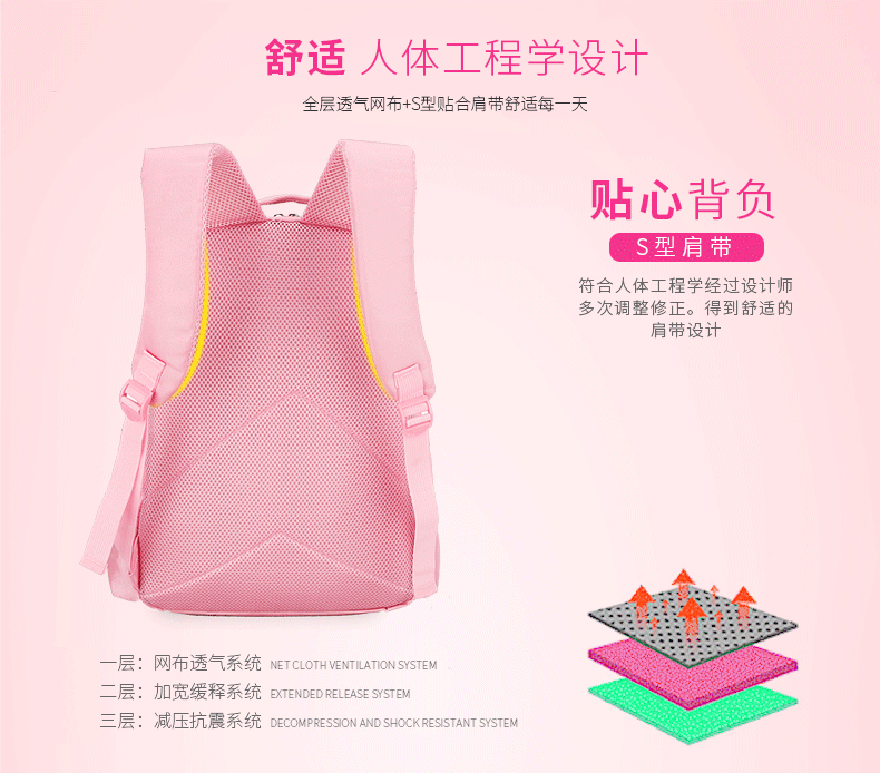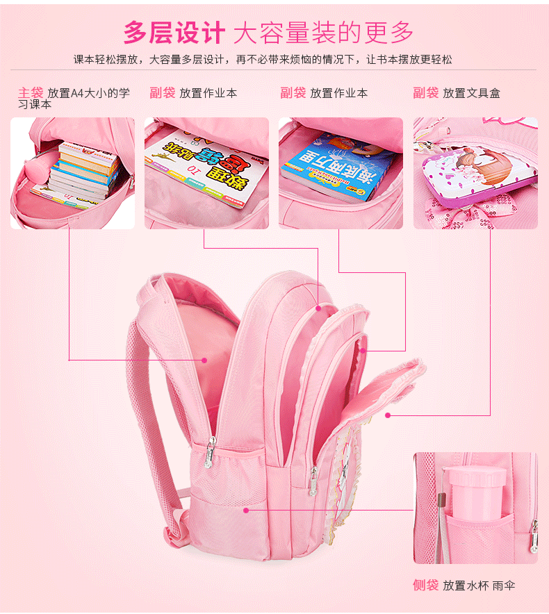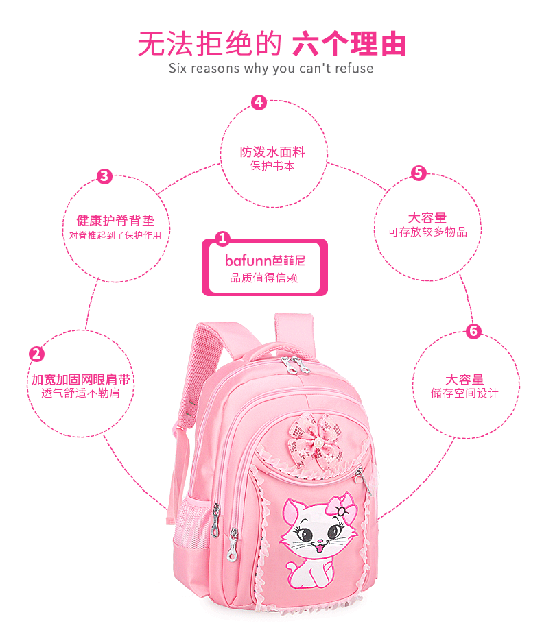 【巴菲尼】官方,品质,健康护脊背垫,防泼水面料,加宽加固网眼肩带,多层设计大容量,终身维修,7天无理由退换货,一款超有公主范的书包!下单即送智能图书哦!