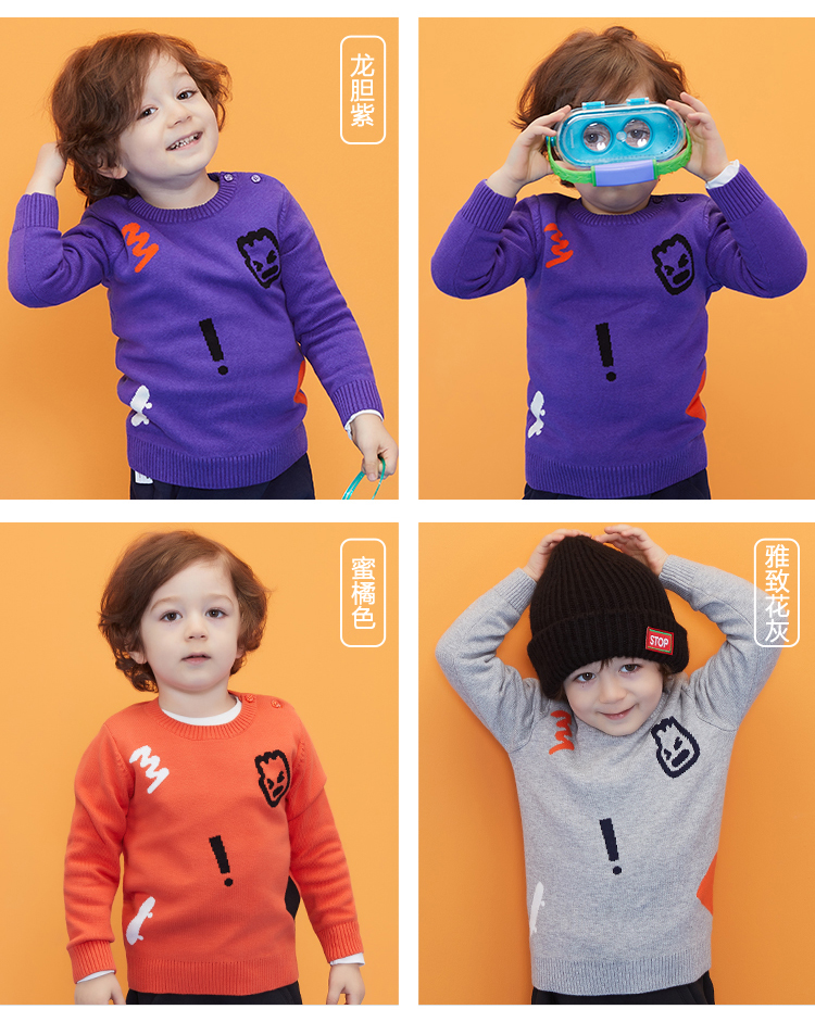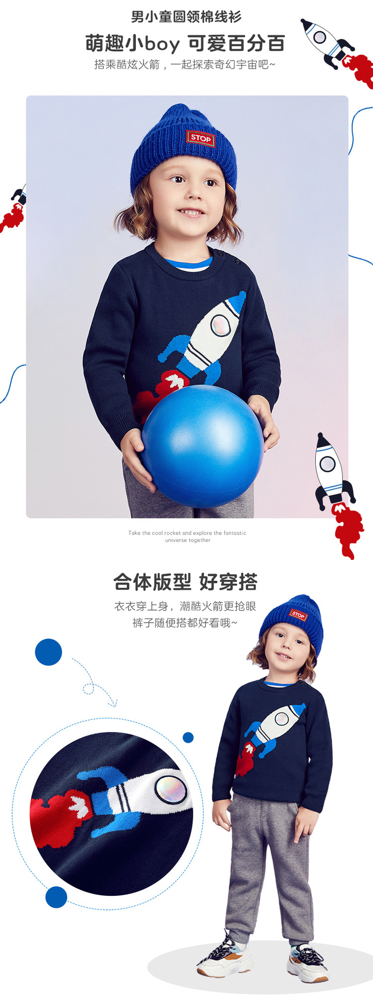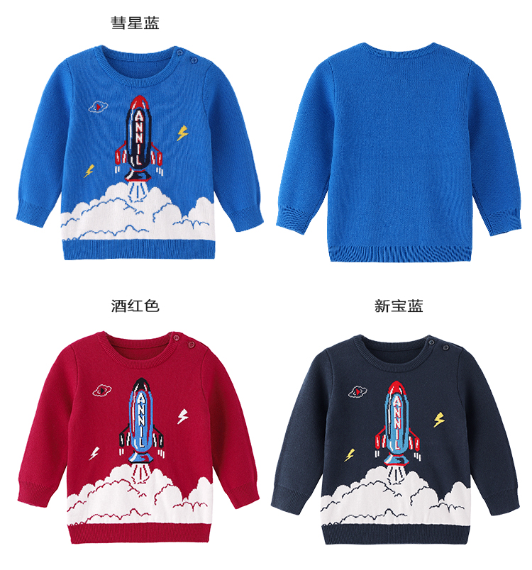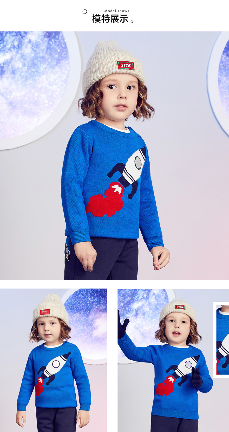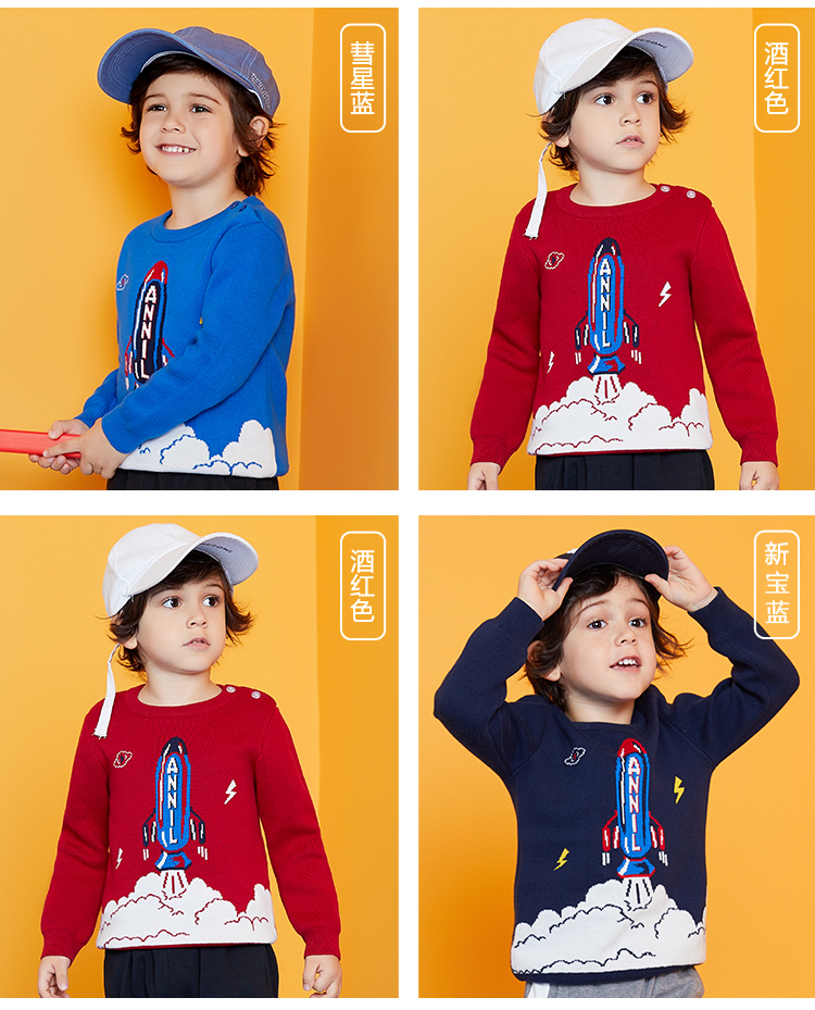 安奈儿童装男童毛衣套头秋冬款纯棉儿童针织衫男小童宝宝冬季洋气