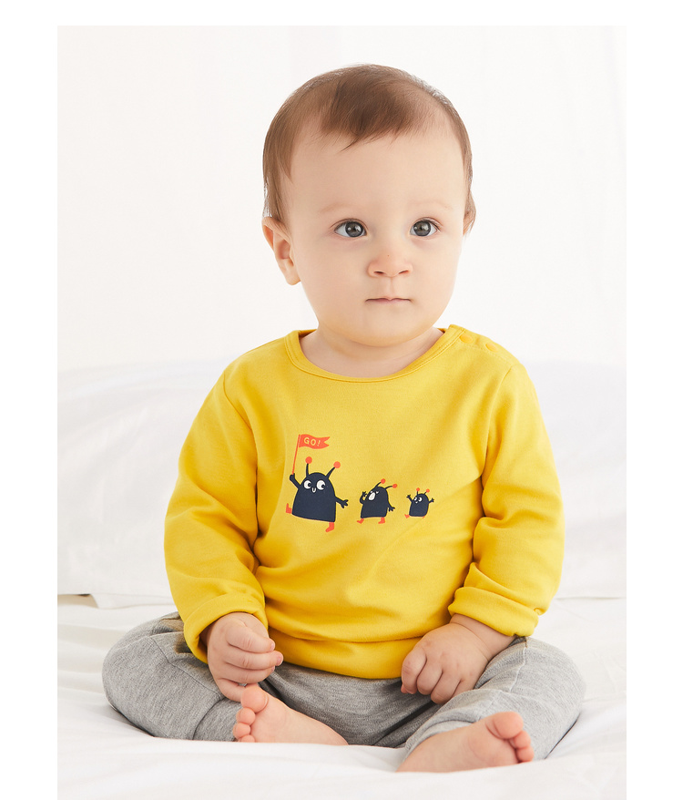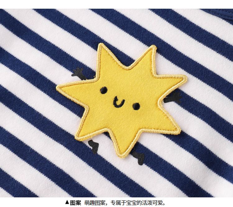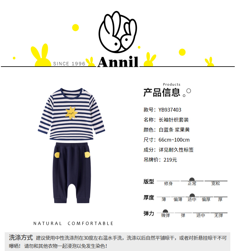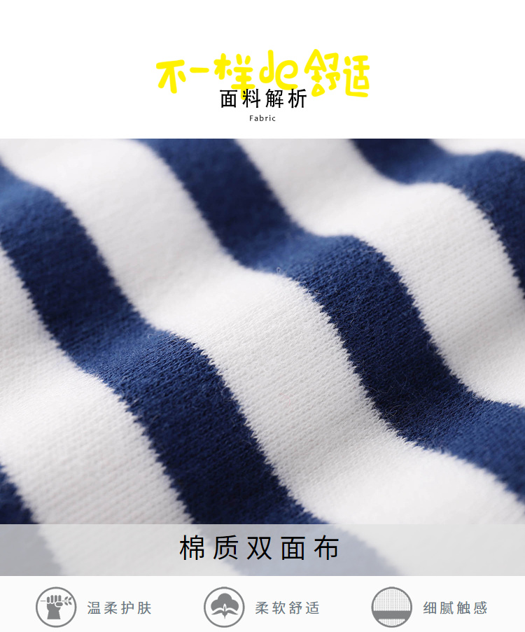 【安奈儿,业界销售过十亿的龙头型童装品牌,A股童装第1股,股票代码:002875】A类纯棉双面面料,温柔护肤,柔软舒适,细腻触感,左侧扣肩,方便宝妈穿脱,萌趣团,专属宝宝的活泼可爱