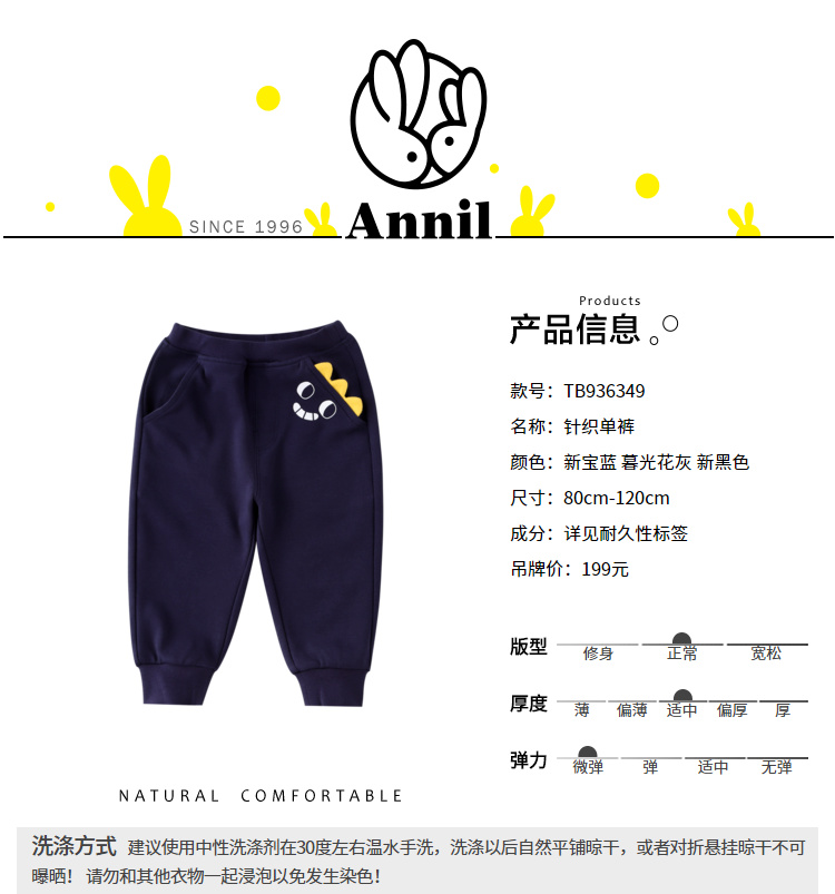 安奈儿男童针织长裤2019春秋装新款洋气宝宝裤子儿童运动裤休闲裤