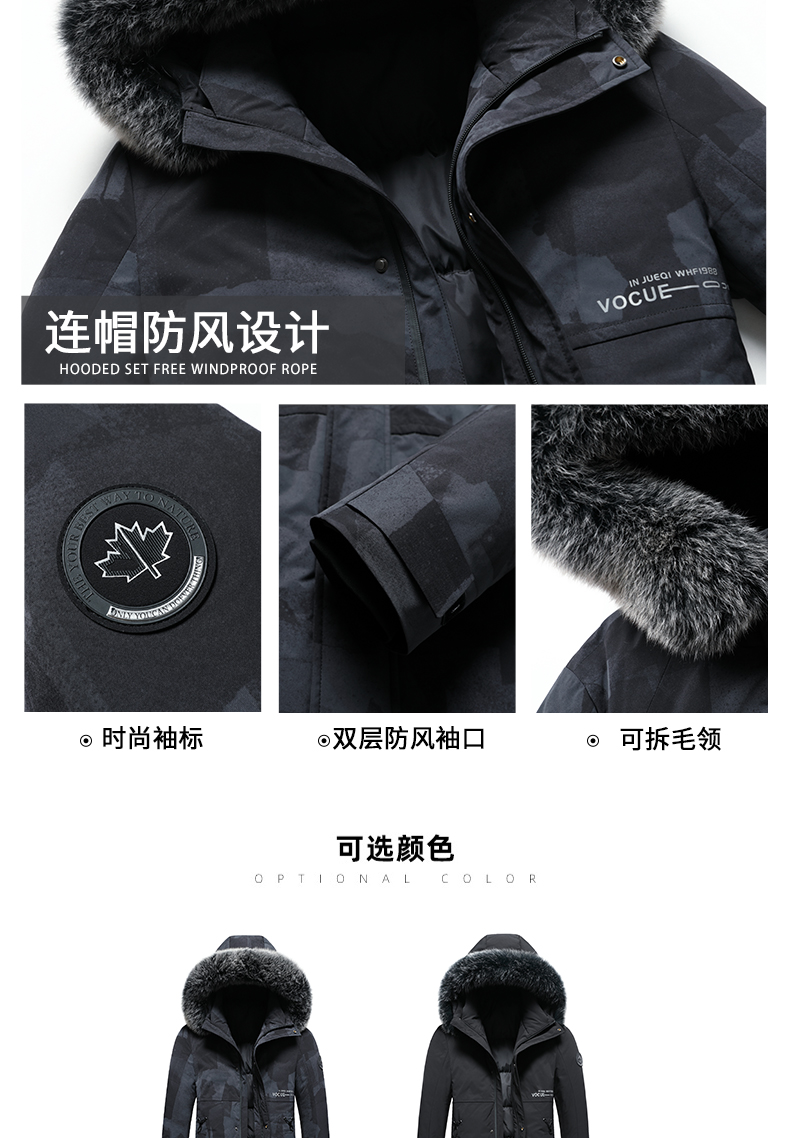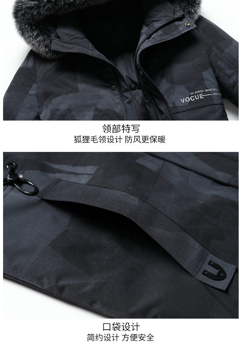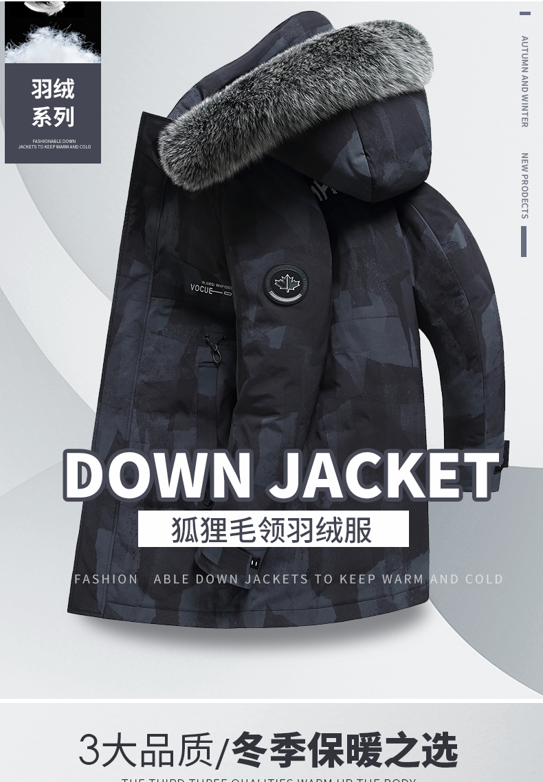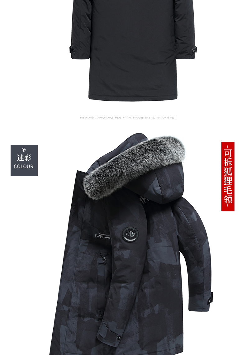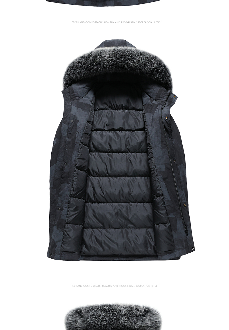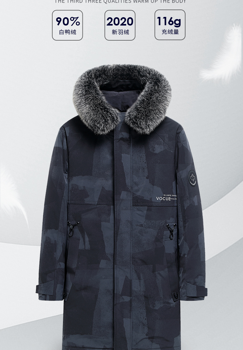 雅鹿2019新款羽绒服男中长款爆款90白鸭绒加厚狐狸毛领商务外套Y