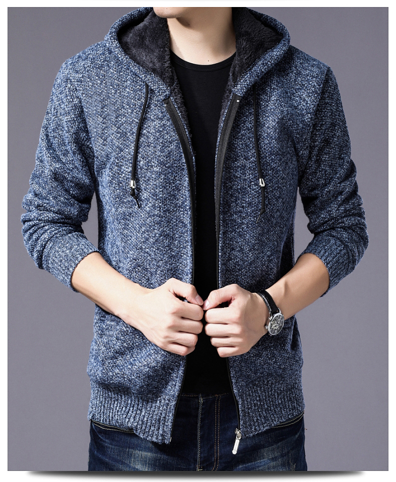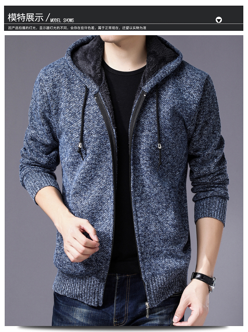 意邦伦男士连帽宽松针织衫外套2019秋冬装新款时尚加薄绒上衣