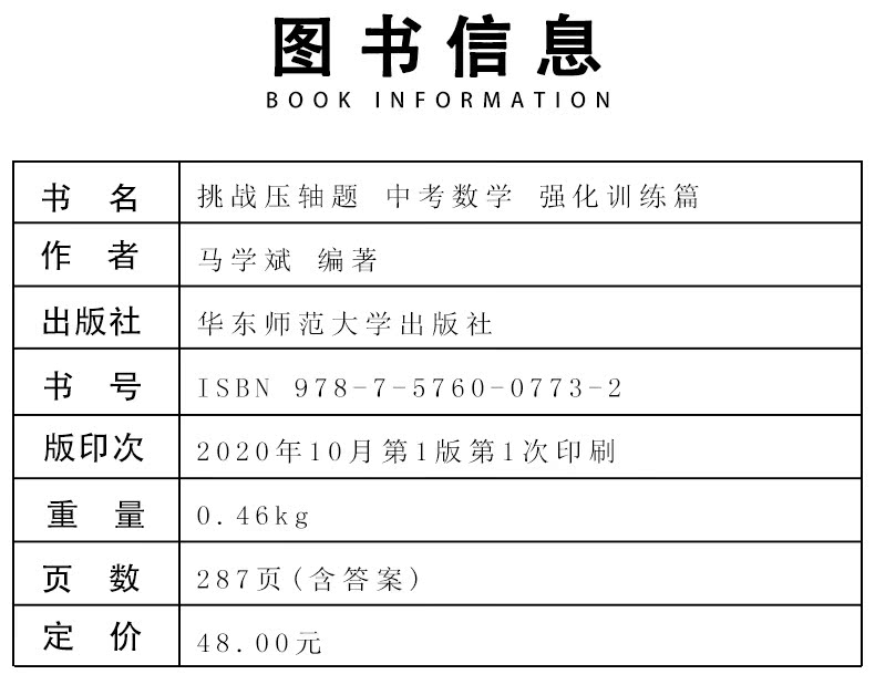 2020新版挑战压轴题中考数学强化训练篇中考压轴题数学初一二三初中总复习冲刺提升讲解练习真题分类资料教辅书试卷华东师范大学