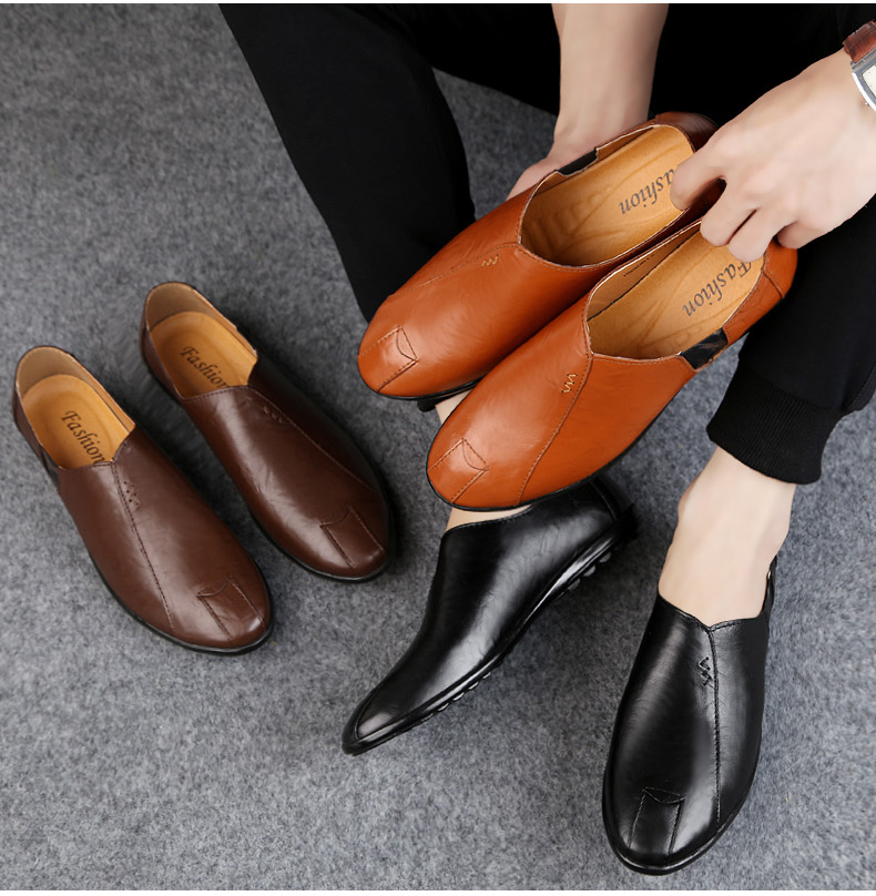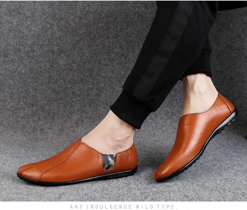 【天猫旗舰店】春夏软底休闲皮鞋,男士真皮套脚豆豆鞋,软皮时尚个性驾车,单鞋潮,真皮款式,脚感舒适!【赠运费险】