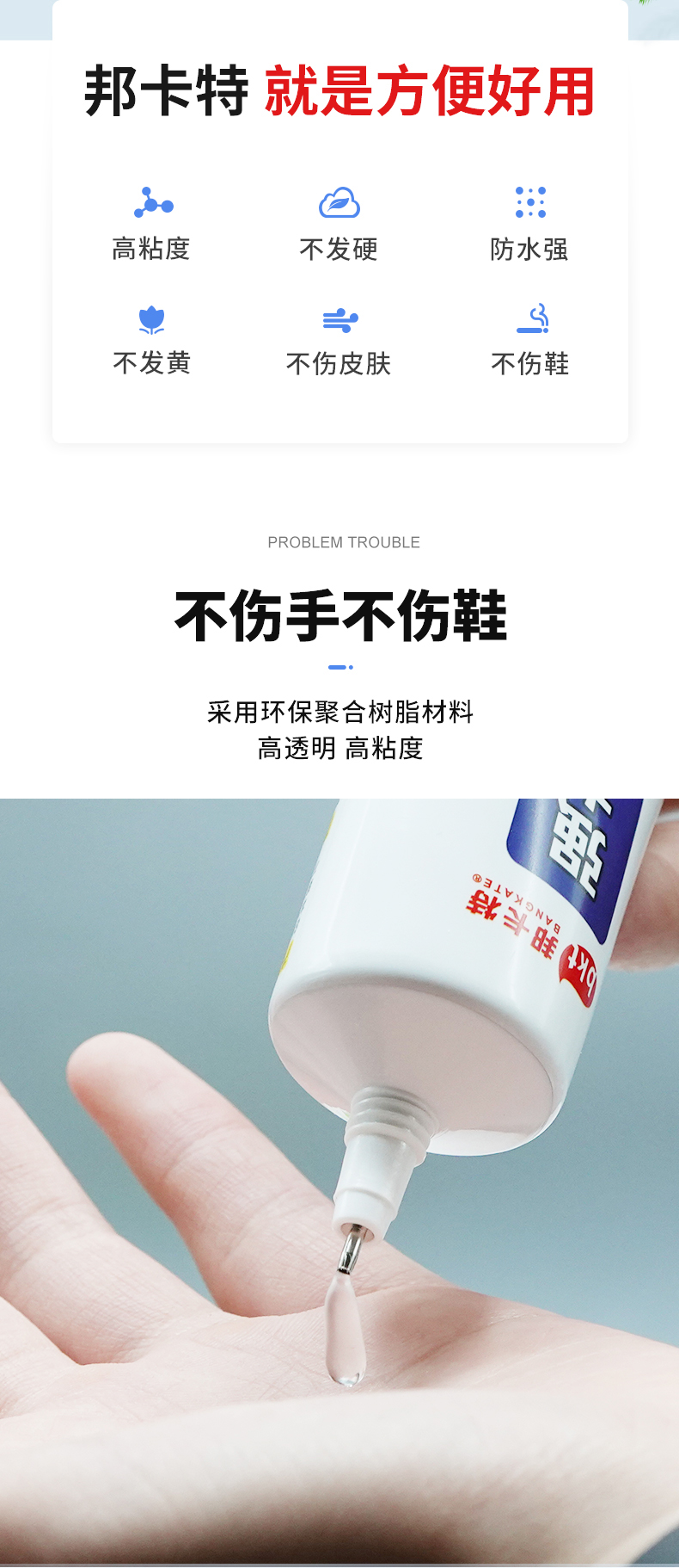 多功能强力胶水,专业防水速干胶,5秒速干强力胶,防水防热不脱胶,多功能用途,粘接金属皮革陶瓷玻璃塑料木头等等,环保无刺激性气味,居家必备,粘住你就别想脱掉~