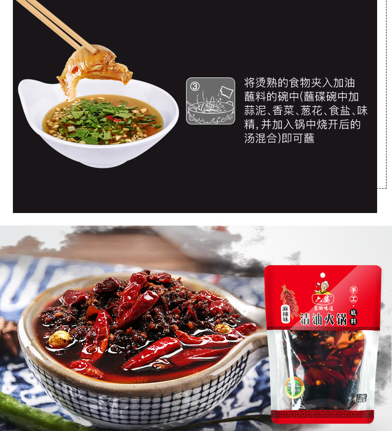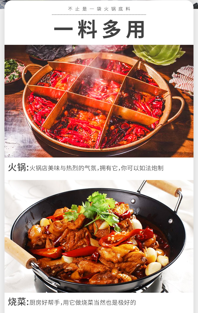 清油无渣火锅底料,超火的牛油火锅底,料真材实料,地道成都风味,分量大用料更足,一料多用,让您在家就能吃火锅,感受来自秋冬的成都!!