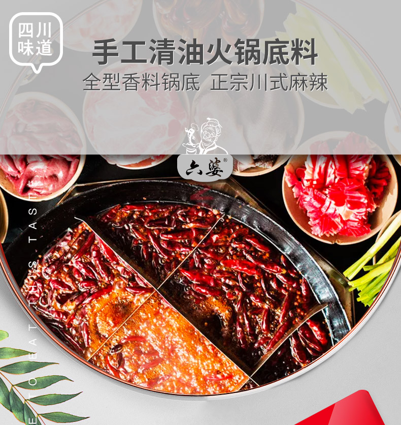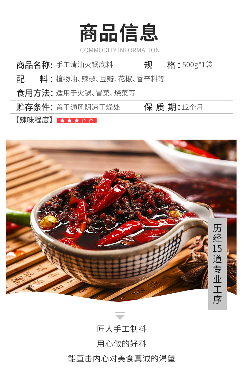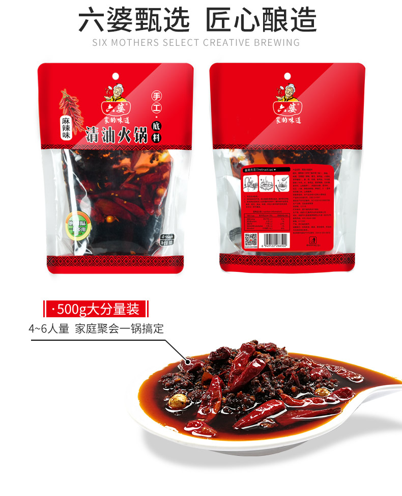 六婆手工清油火锅底料500g 麻辣四川火锅底料调味品 手工火锅底料