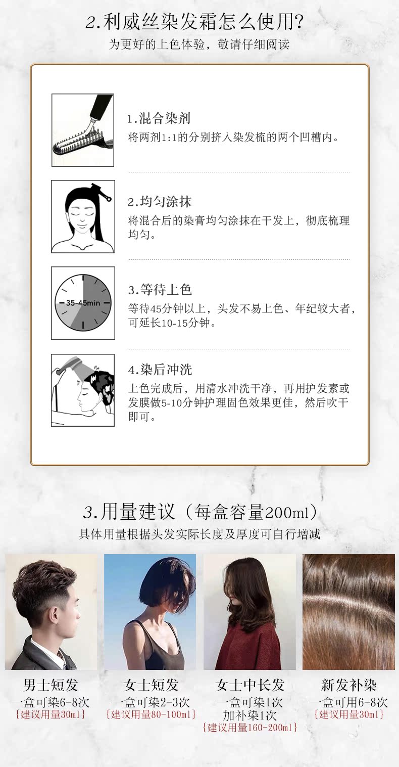 利威丝染发剂纯染头发膏自然黑色植物天然清水无刺激遮盖白发补色