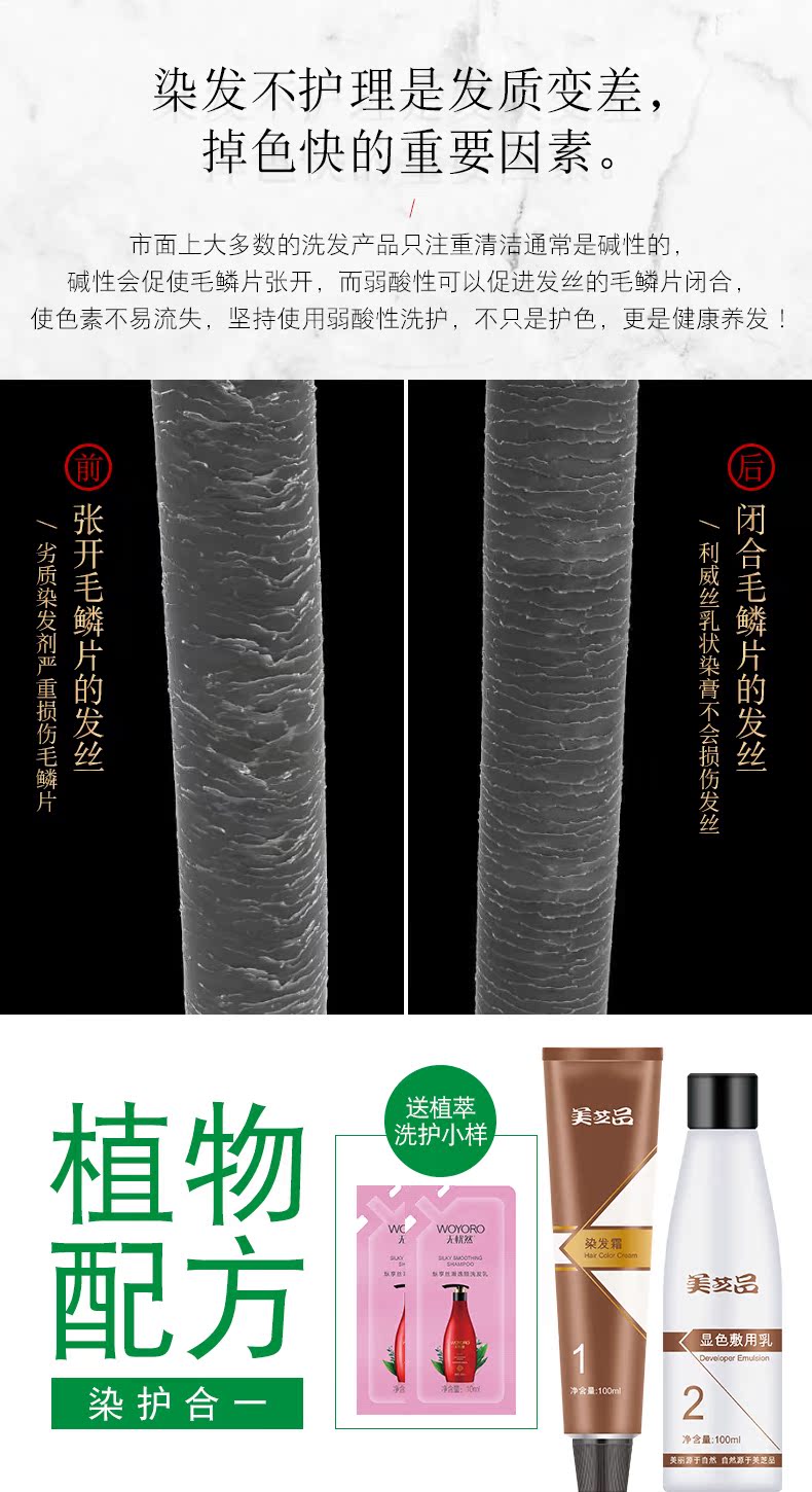 植物配方,染护合一,不黑头皮,果味清香,自然发色,操作便捷,一梳就黑,买二送一。