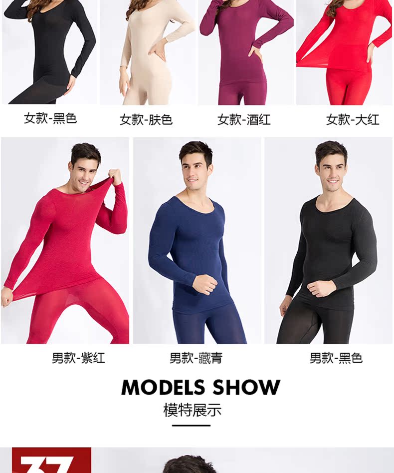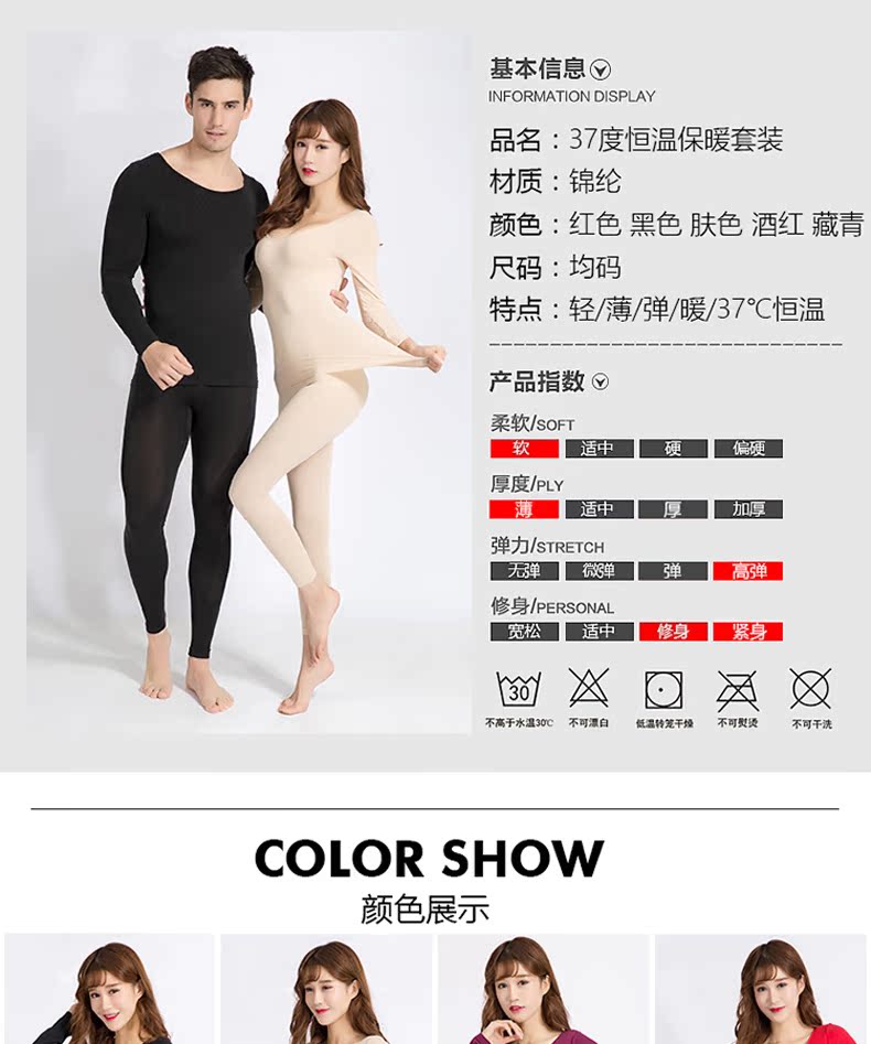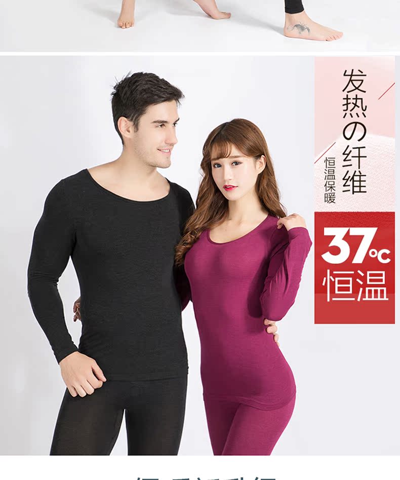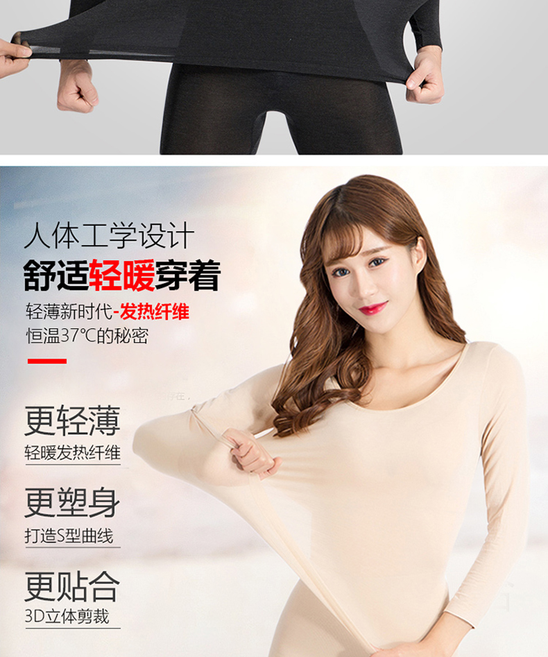 幼莎37度恒温超薄保暖内衣套装女士发热内衣高弹修身打底秋衣秋裤