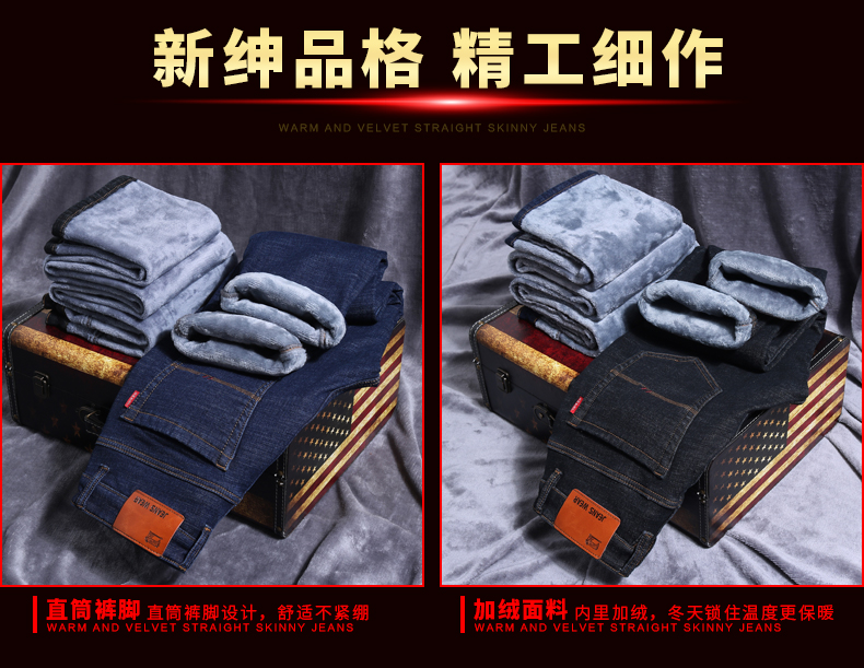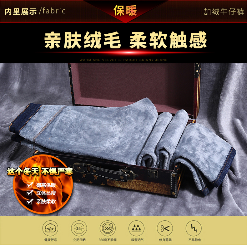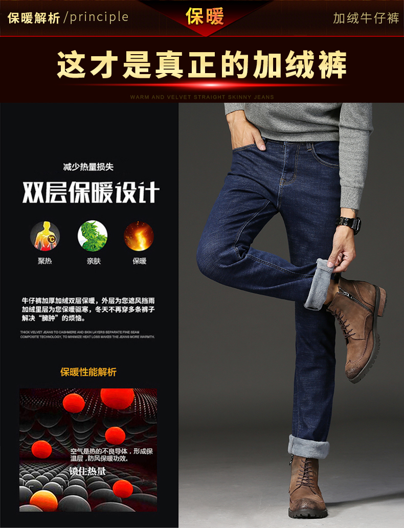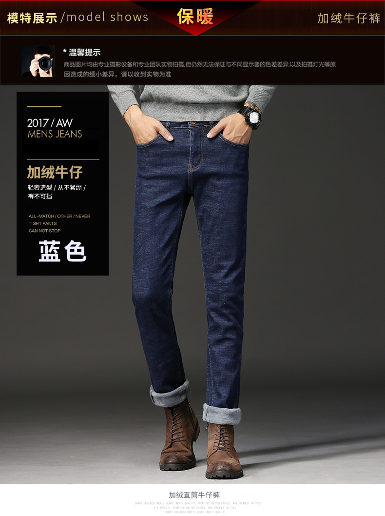 男士冬款加厚加绒牛仔裤,高品质,休闲弹力牛仔面料、简约修身,棉弹舒适,不挑身材,轻松驾驭,超有范;优质面料,舒适贴身,不起球不变形不掉绒,男人必备!