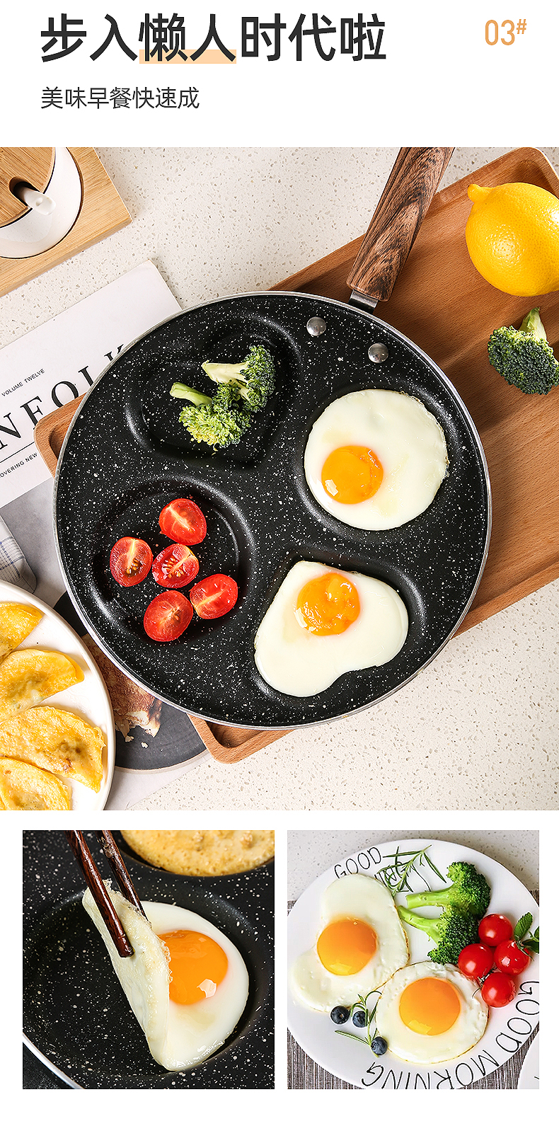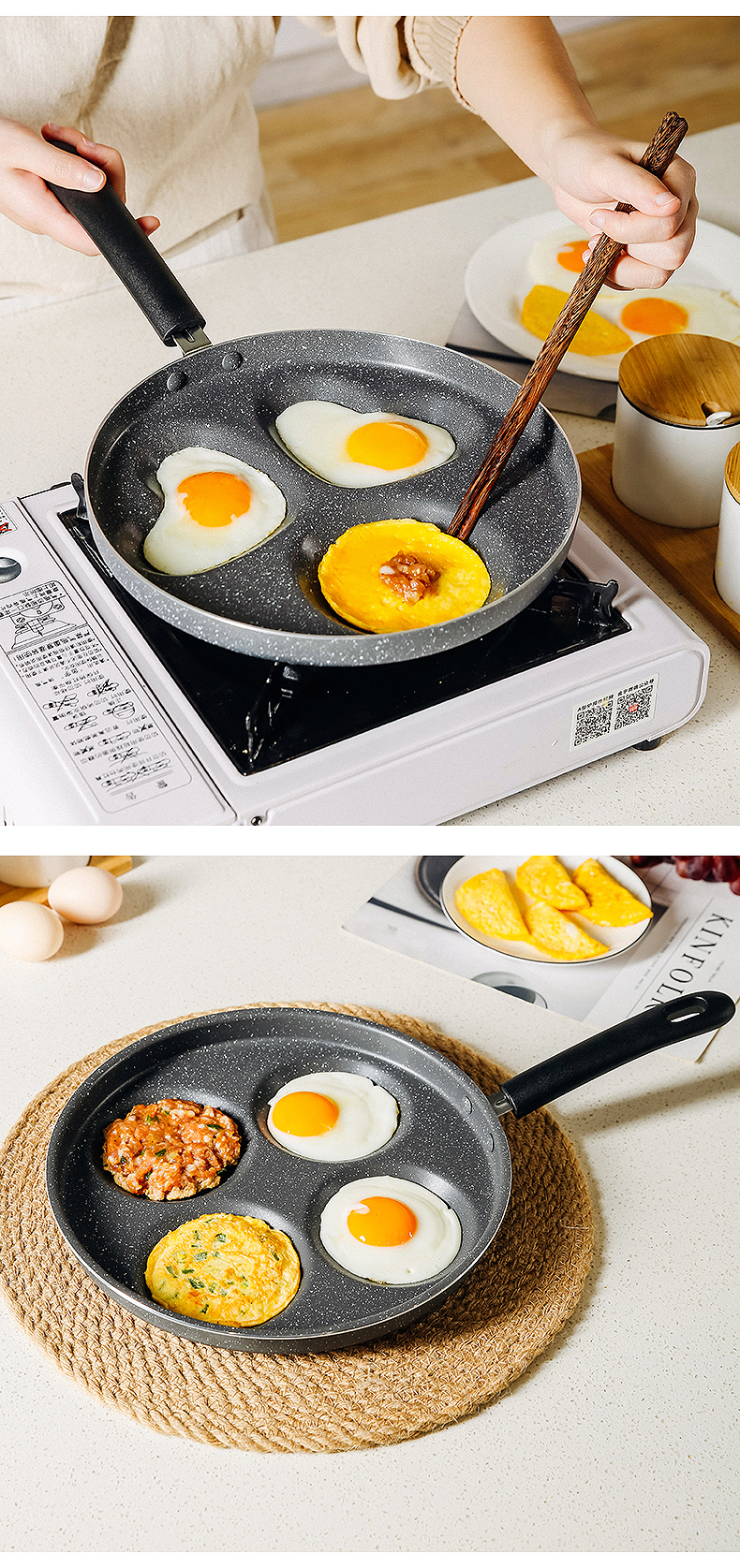 四孔早餐锅,10分钟快速做早餐,营养美味,高温耐磨稳定,易清洗,一冲即净,高强复合锅底,受热更均匀更耐用,轻油享美食,生活更健【赠运费险】