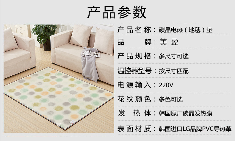 美盈和暖碳晶电热地暖垫电热暖脚垫客厅用电热地毯移动地暖垫电热