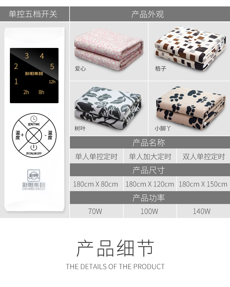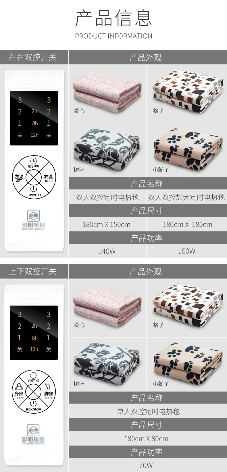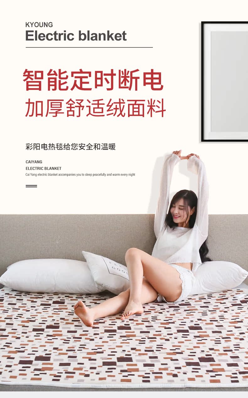 彩阳电热毯双人双控调温安全辐射无三人家用加大单人1.5米电褥子