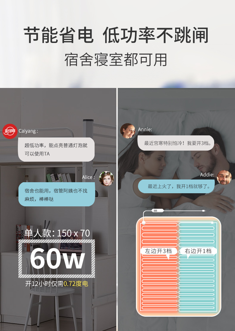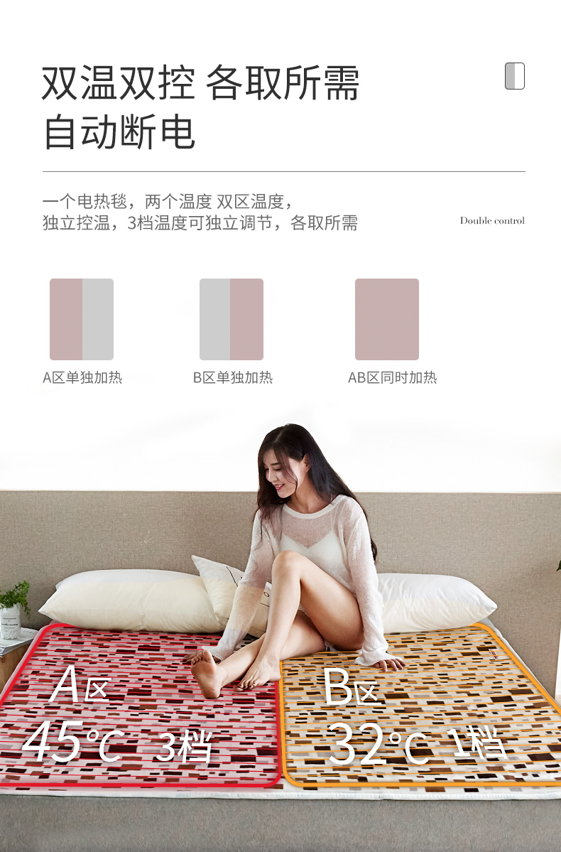 3C认证,安全可靠,亲肤面料,均匀发热,3档调温过热自动断电,节能省电无辐射,防水不漏电,品质之选!虚寒温暖,不如一床电热毯!【赠运费险】